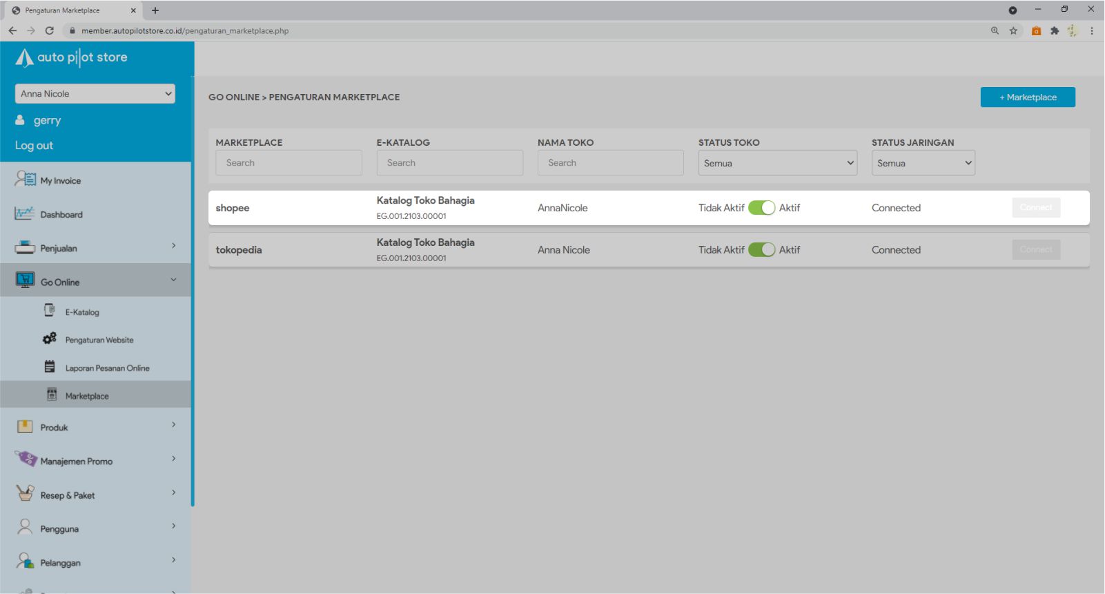 3. Pilih marketplace yang Anda ingin ubah datanya
