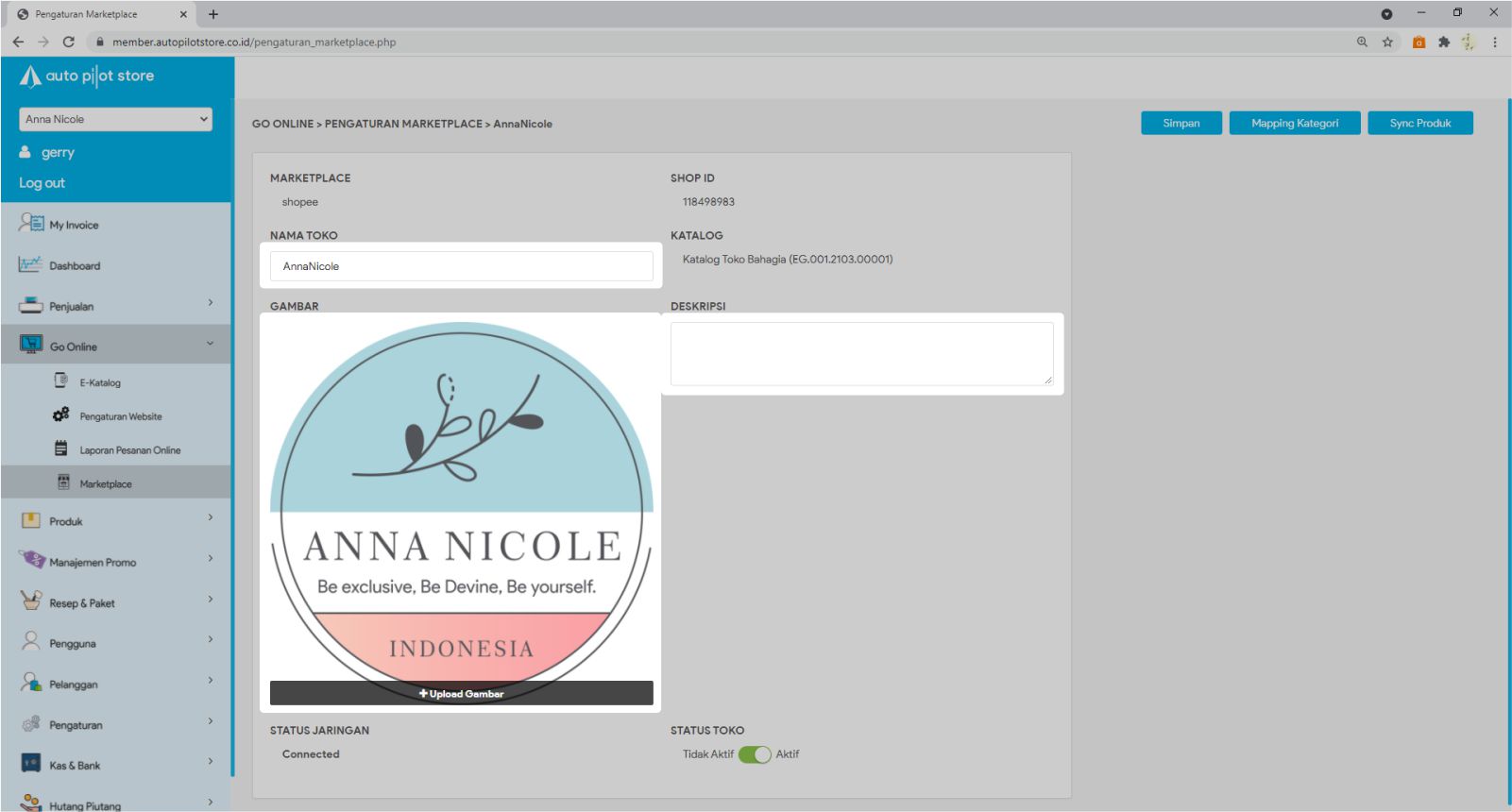 Data marketplace yang bisa Anda ubah hanya marketplace yang berasal dari Shopee saja.