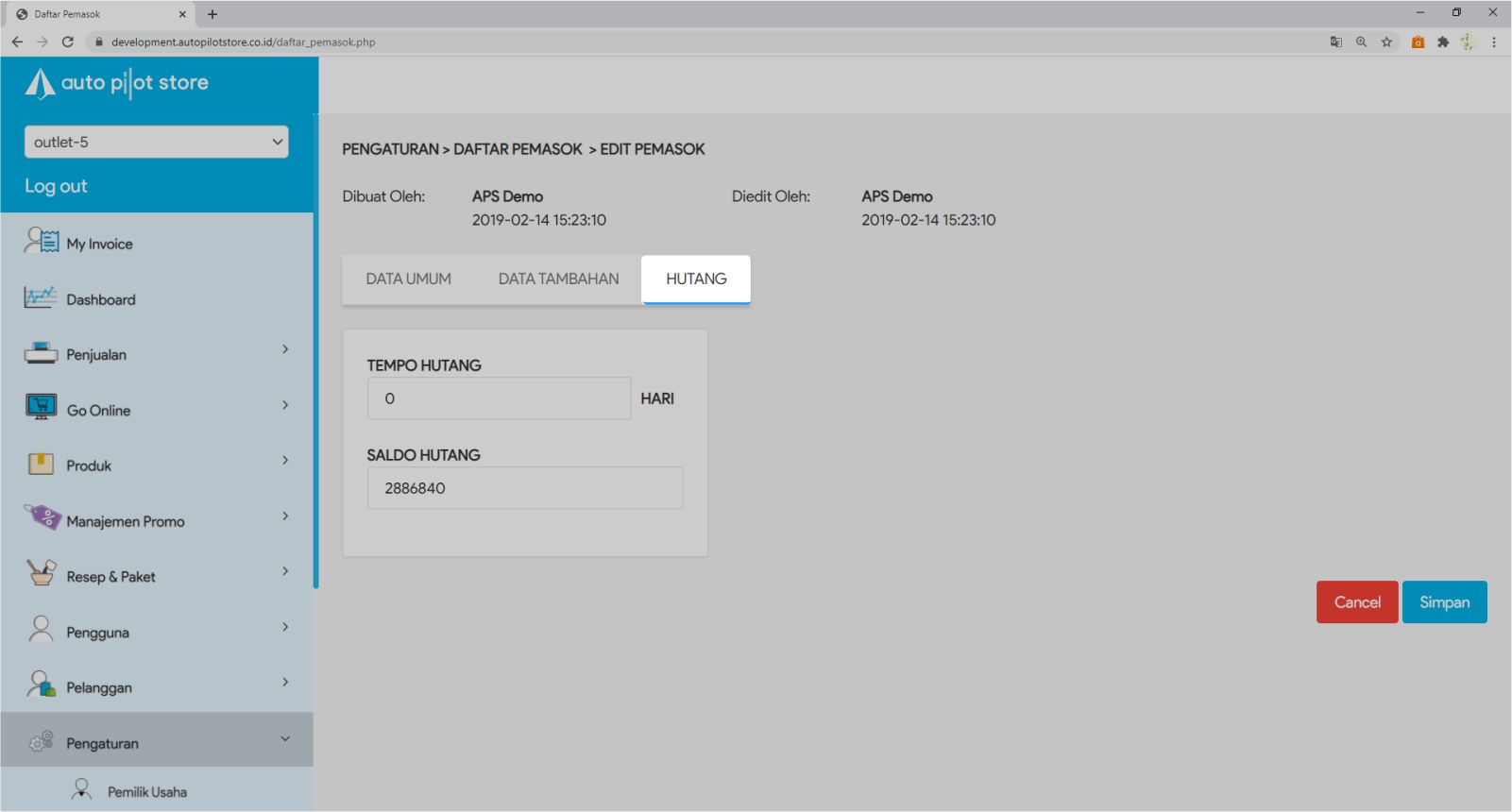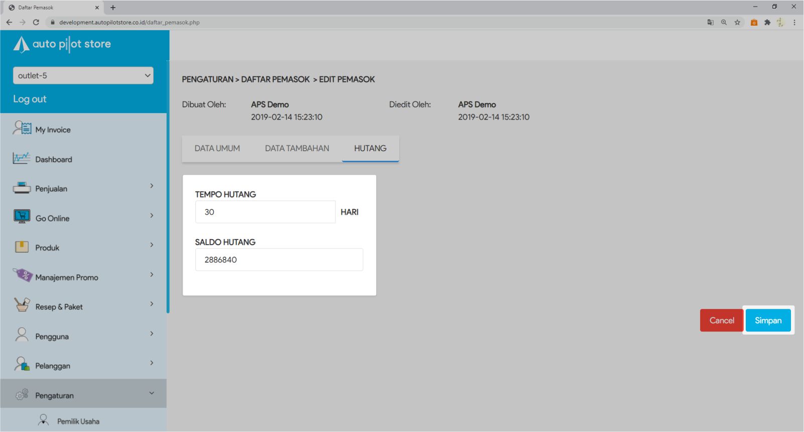 6. Masukkan Tempo Hutang.