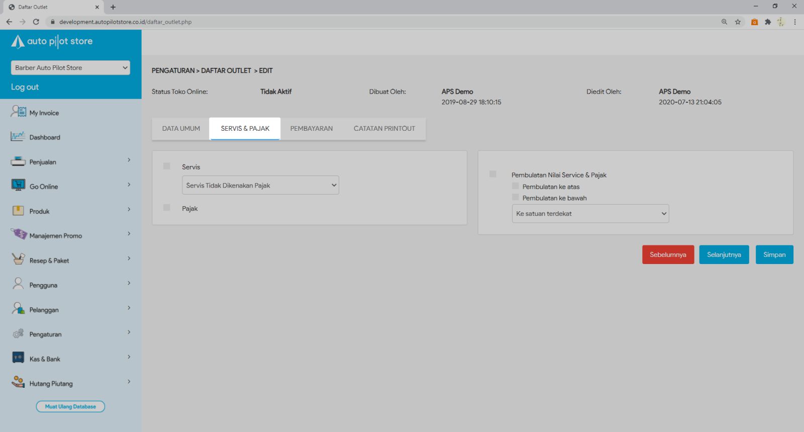4. Pilih Tabulasi Servis & Pajak