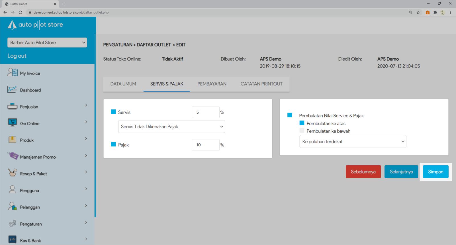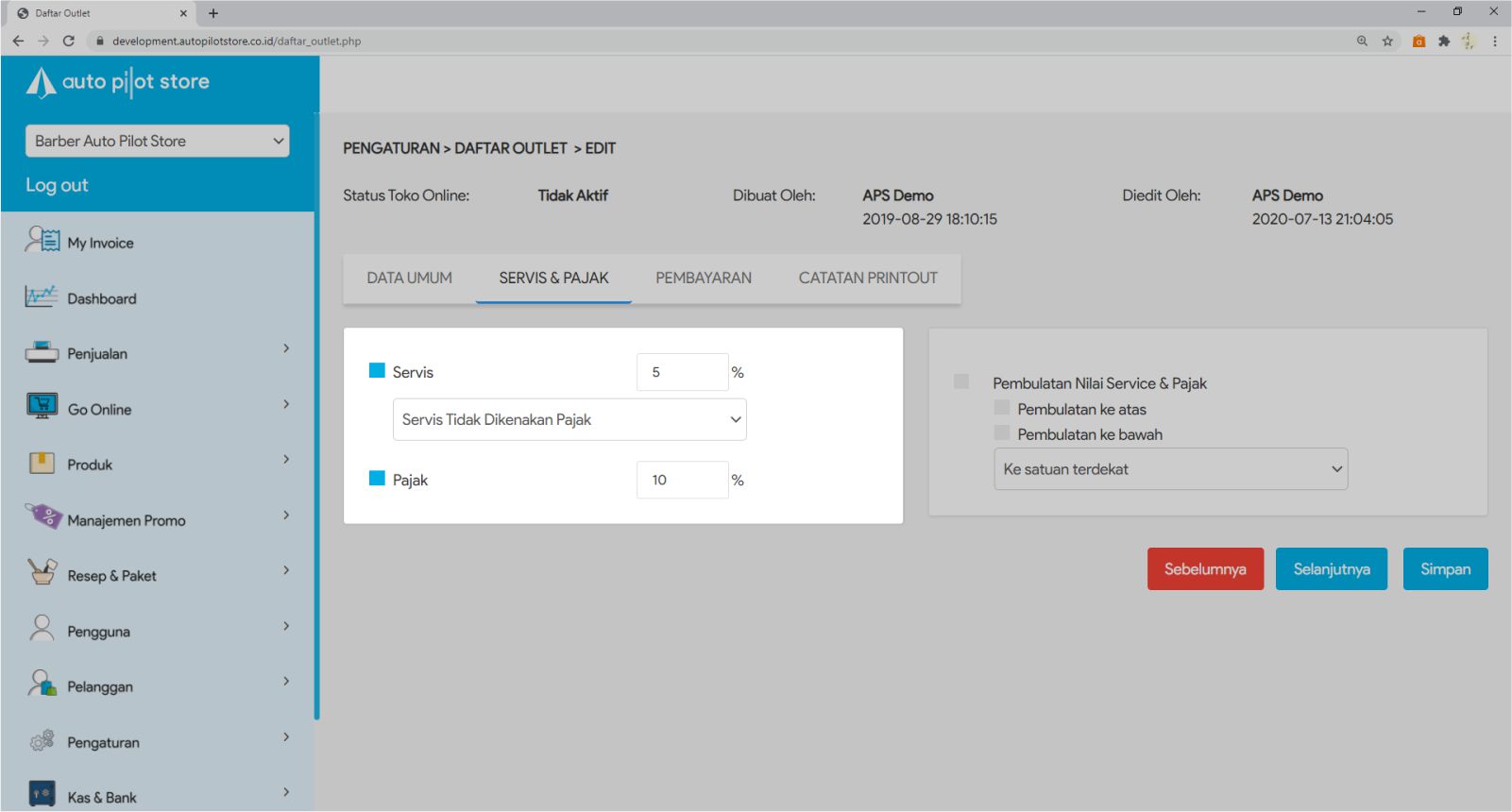 8. Klik checklist Pembulatan Nilai Servis & Pajak. Atur tipe pembulatan yang diinginkan (optional)