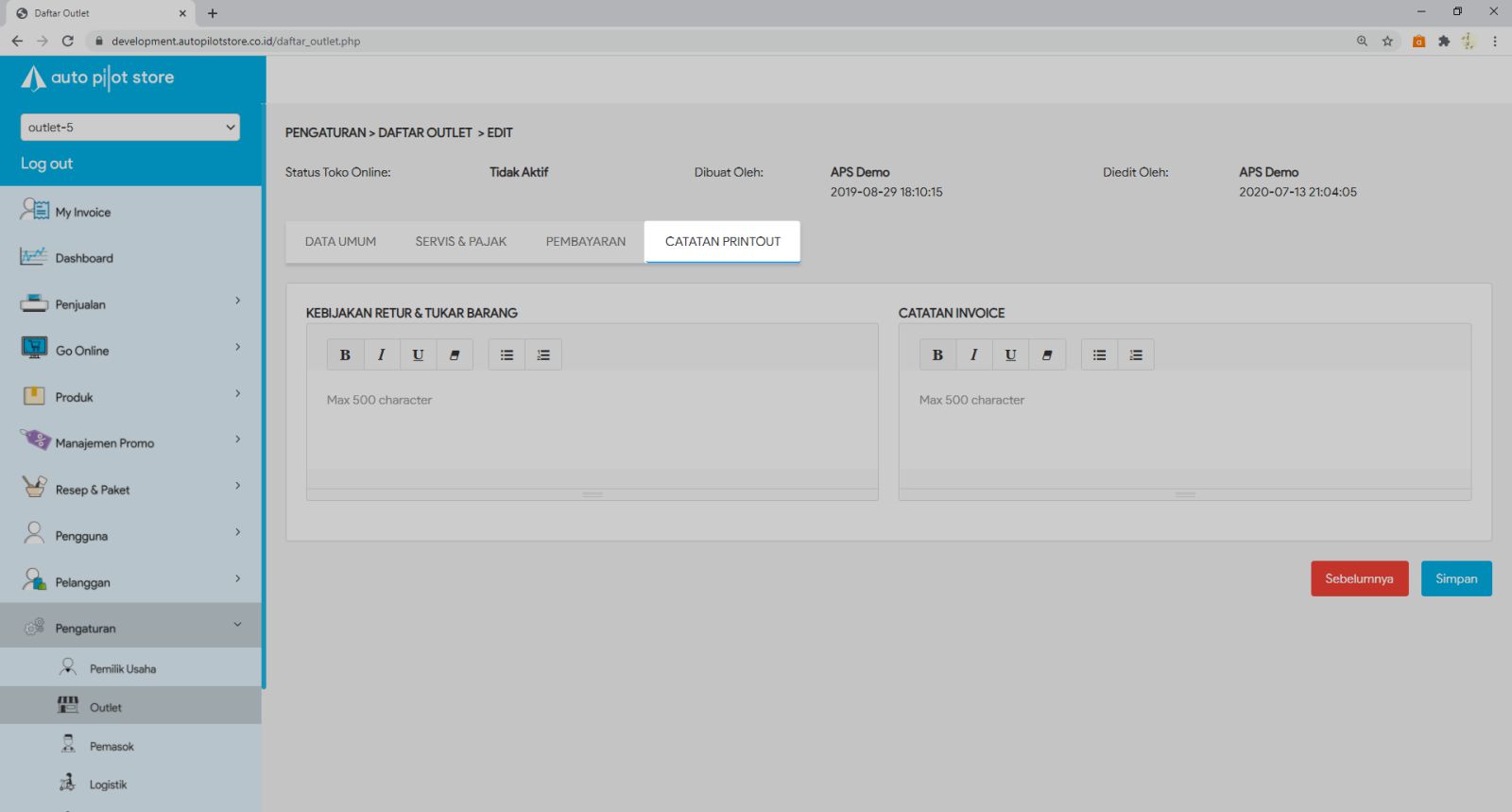 5. Masukkan catatan mengenai kebijakan retur, tukar barang dan catatan invoice lainnya yang diperlukan