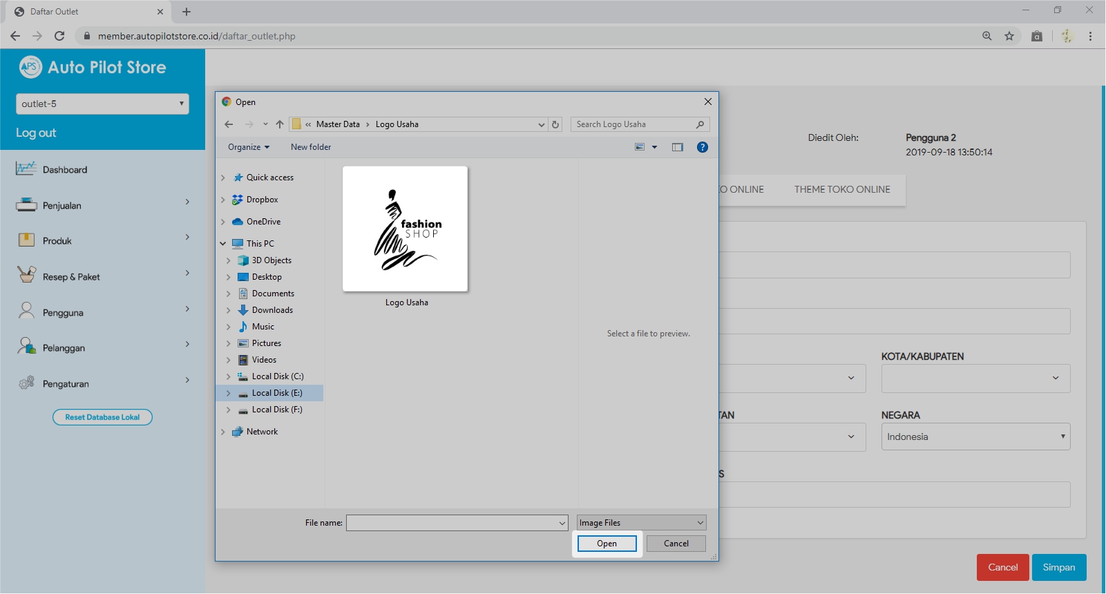 7. Pilih Open dan tunggu hingga proses upload selesai