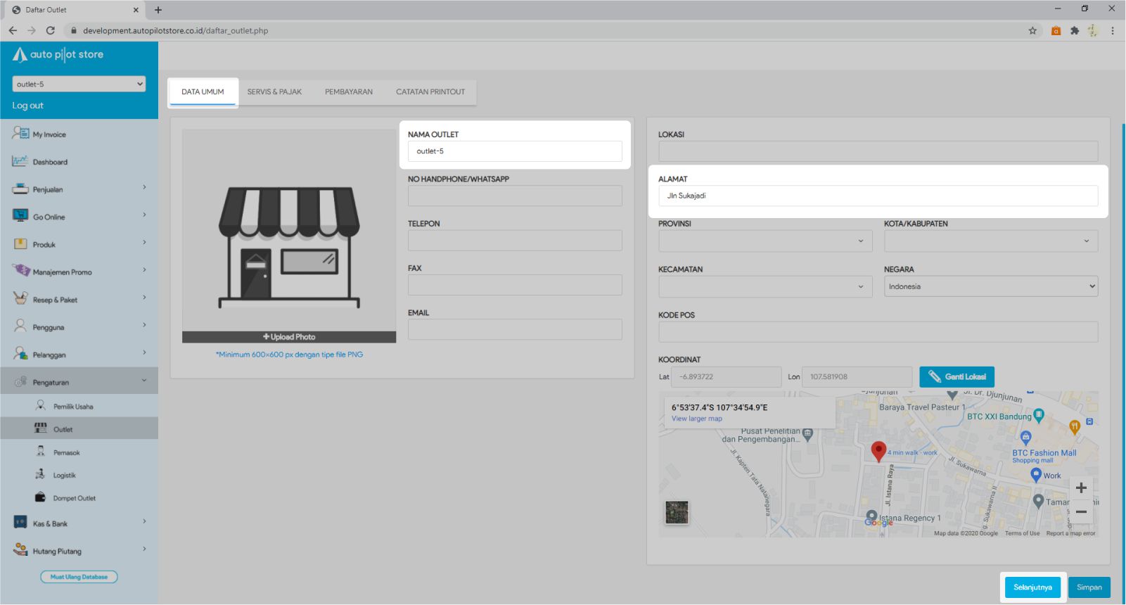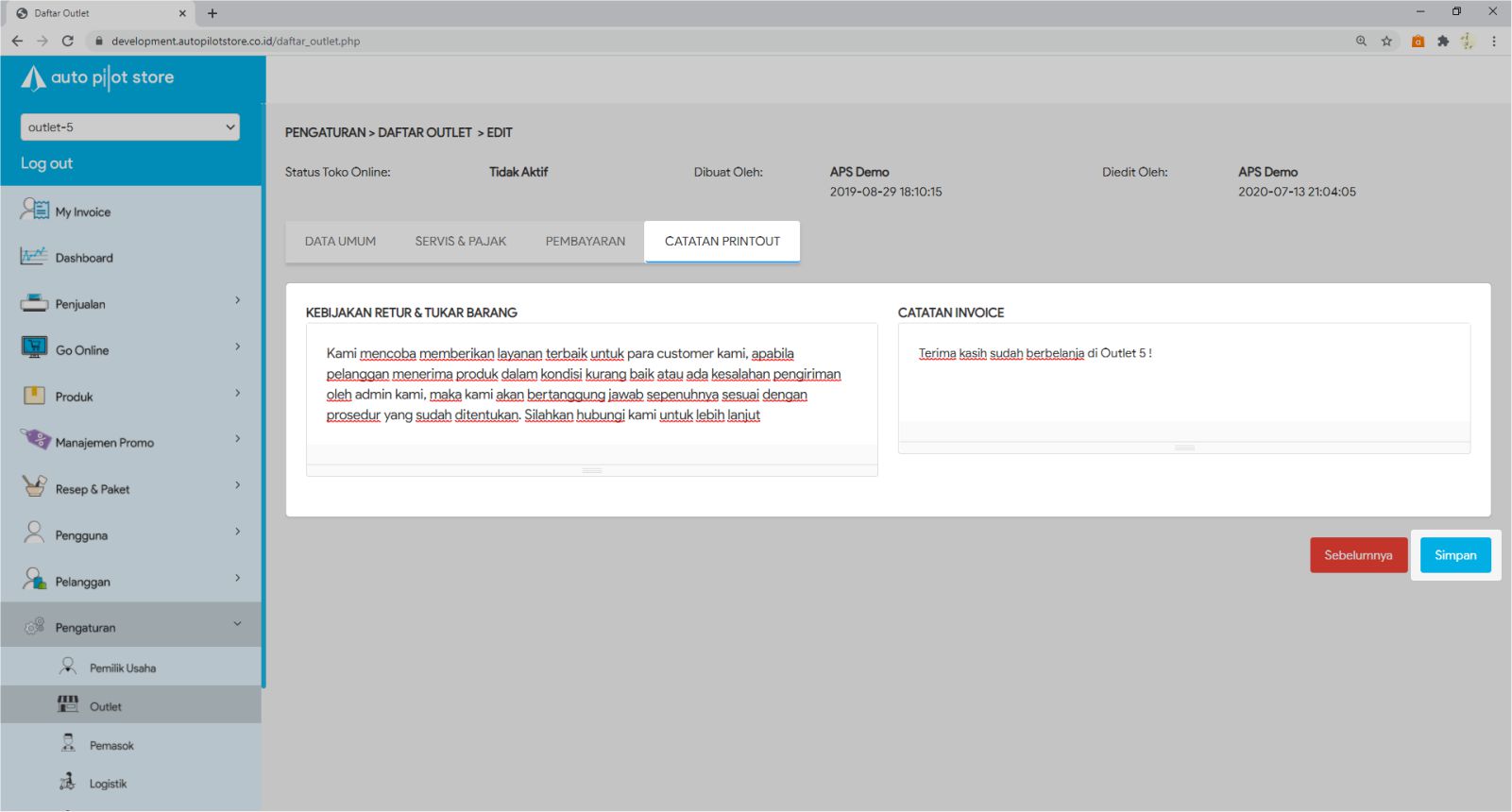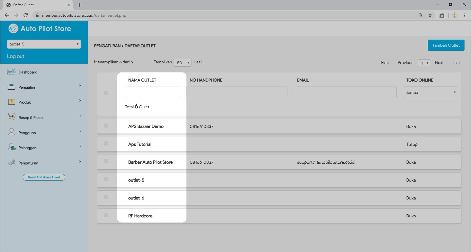 3. Pilih Nama Outlet yang akan diubah data nya