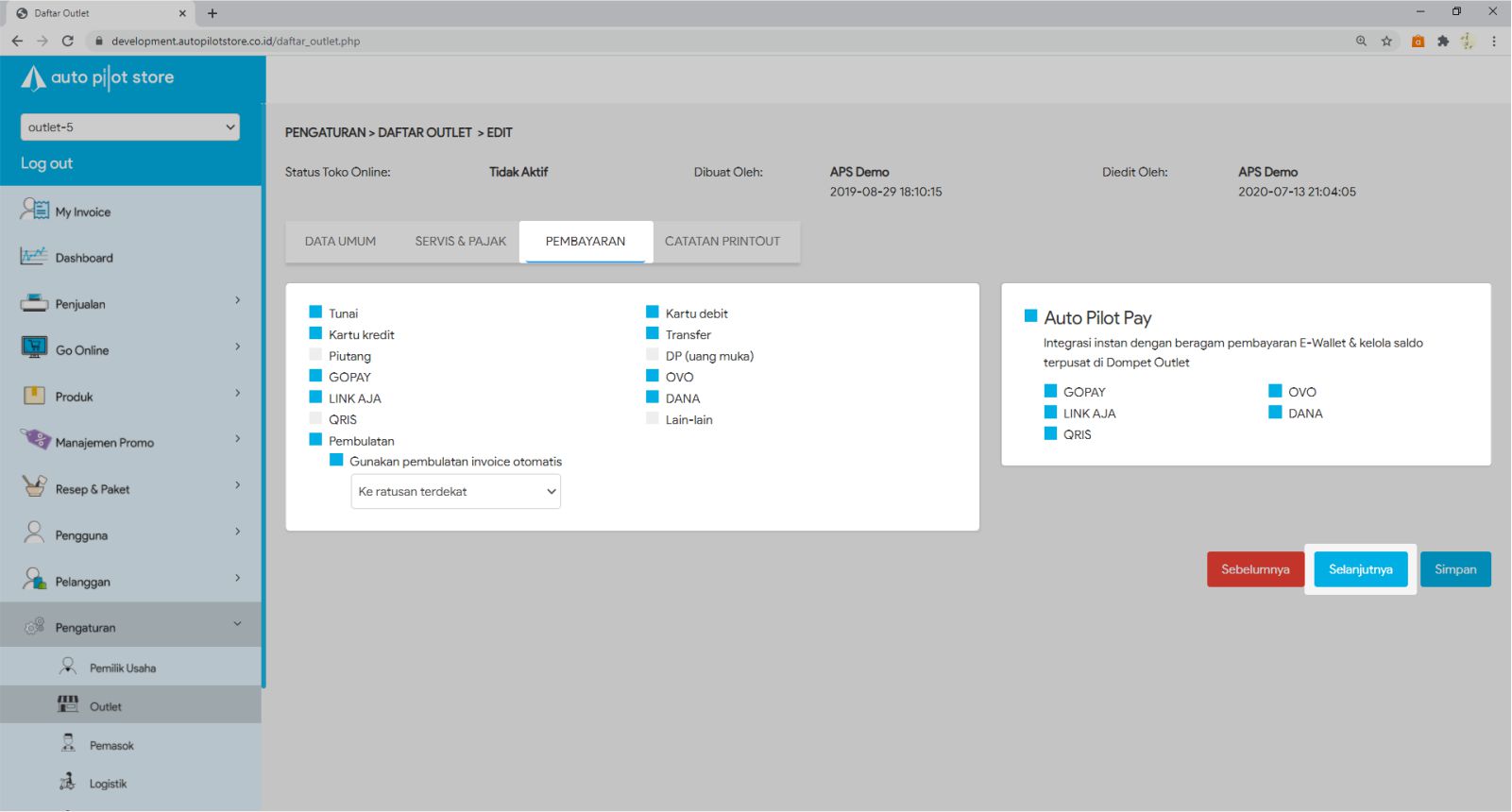 8. Pilih tipe pembayaran apa saja yang ingin ditampilkan pada fasilitas Kasir. Atur pembulatan nilai invoice otomatis jika diperlukan (opsional)