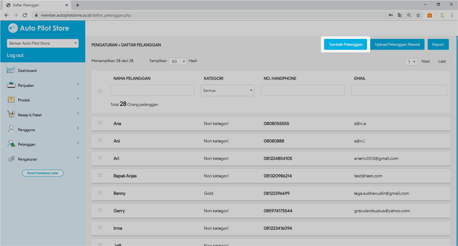 2. Pilih Sub Menu Daftar Pelanggan