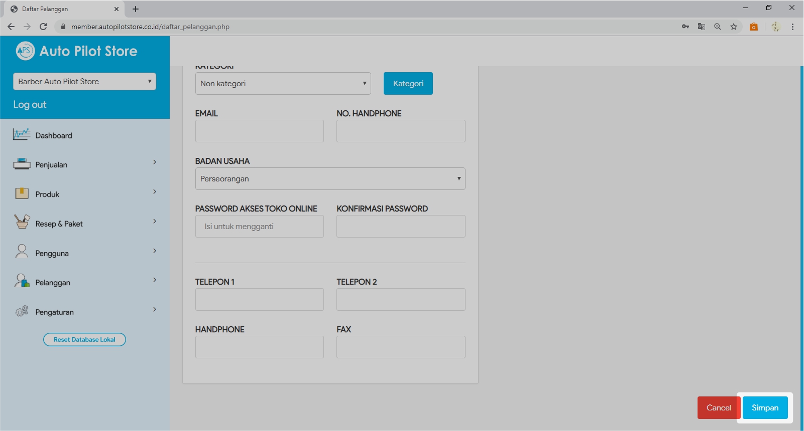 3. Pilih icon Tambah Pelanggan