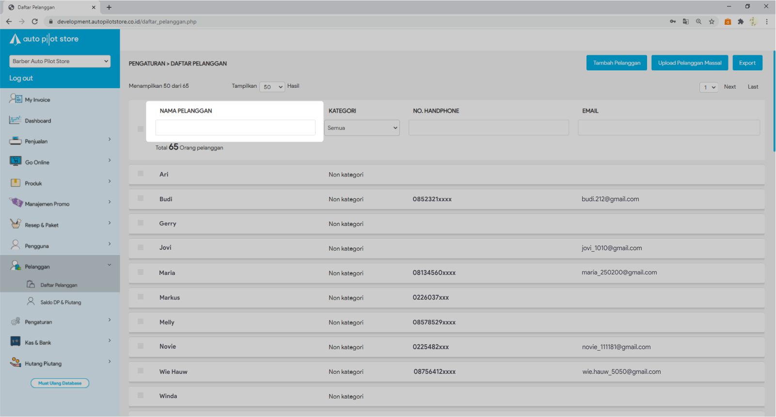 3. Masukkan nama pelanggan yang ingin diatur pada kolom pencarian