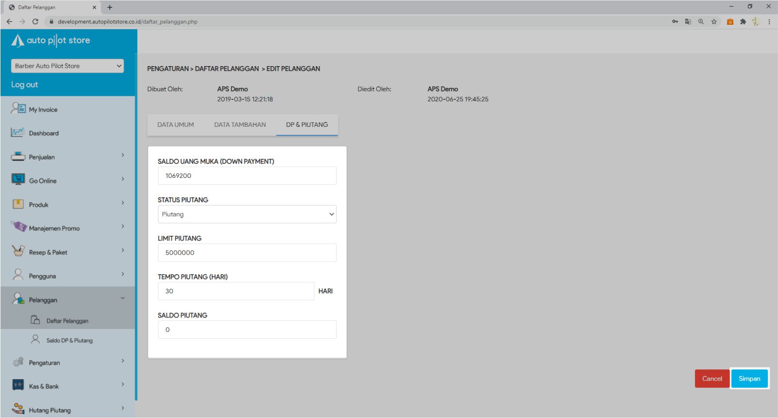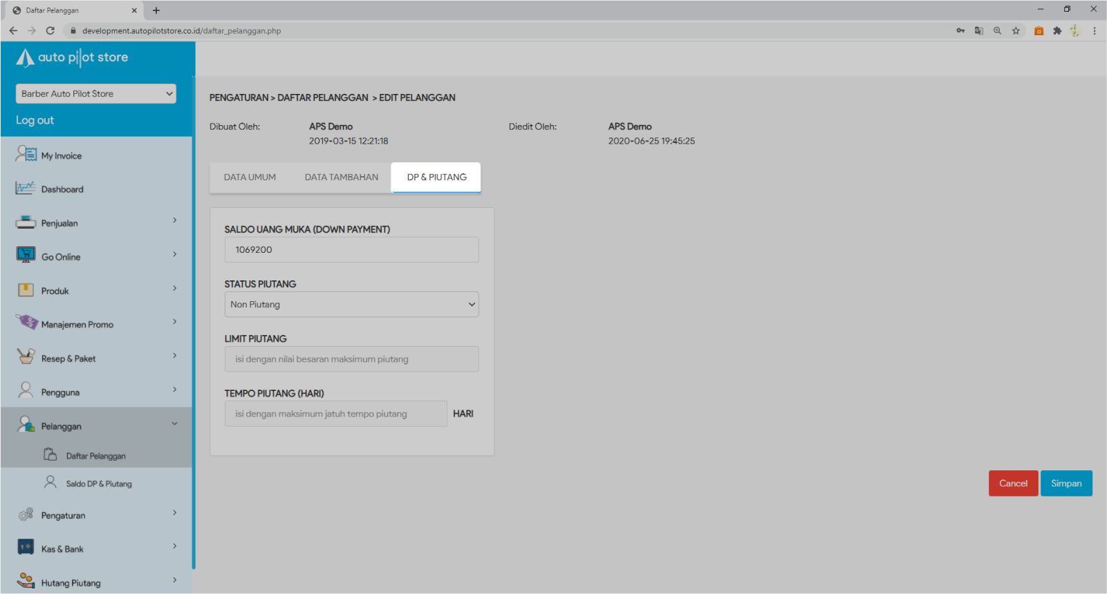 7. Masukkan Limit Piutang & Tempo Piutang.