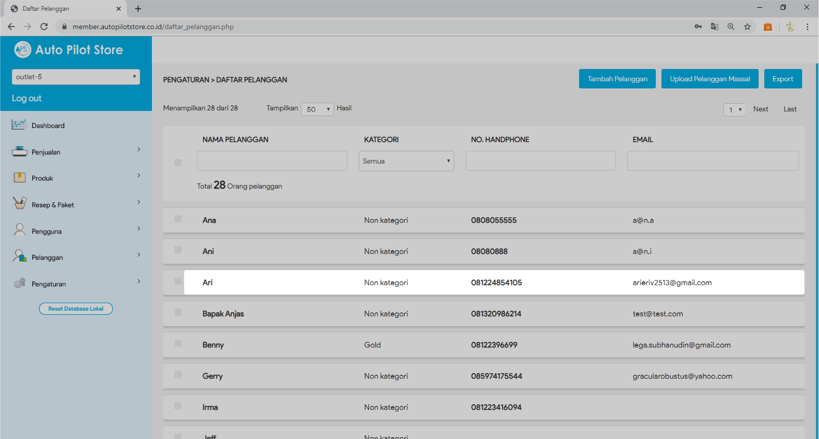 2. Pilih Sub Menu Daftar Pelanggan