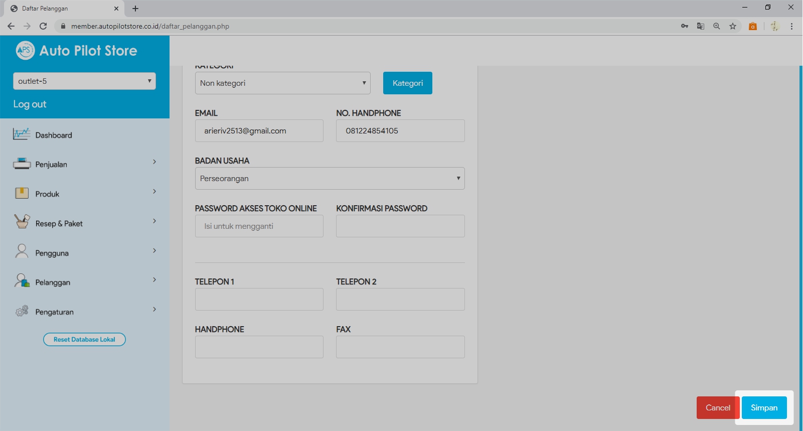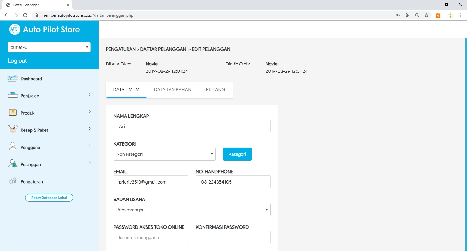 4. Klik Nama Pelanggan yang ingin dirubah datanya