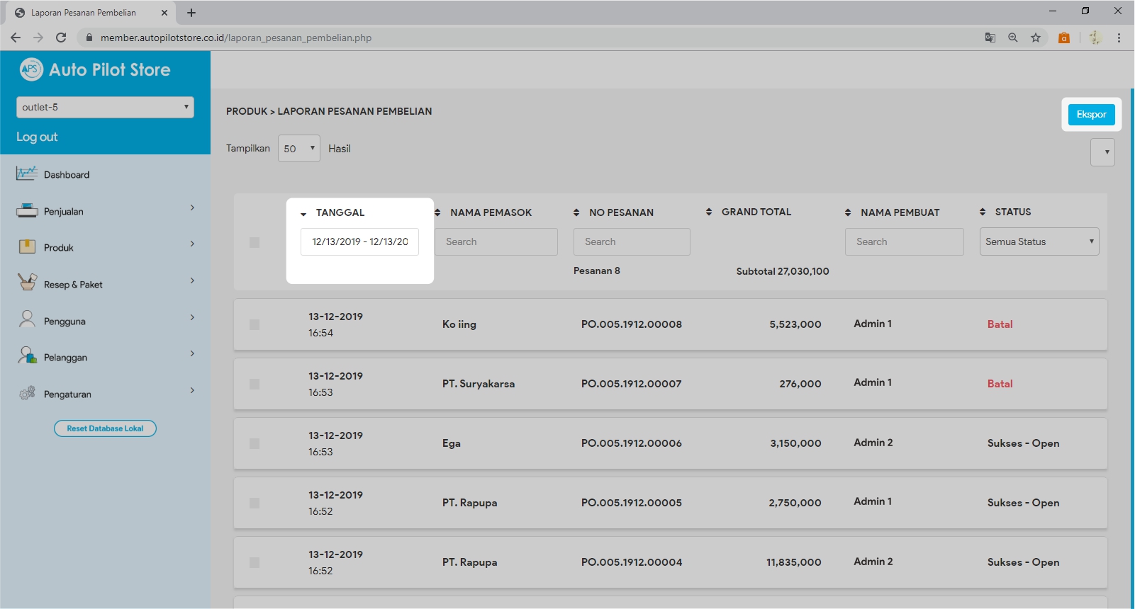 Melakukan Ekspor Data Pesanan Pembelian ke File Excel
