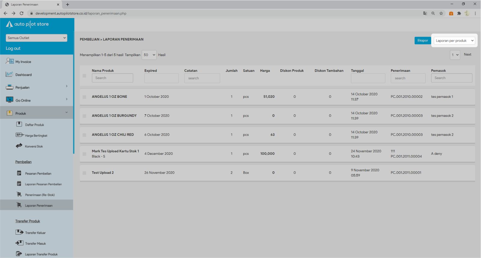 3. Pilih tipe Laporan Per Produk