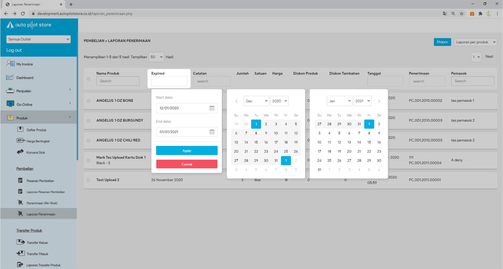 4. Masukkan tanggal (awal dan akhir) periode yang diinginkan pada kolom expired