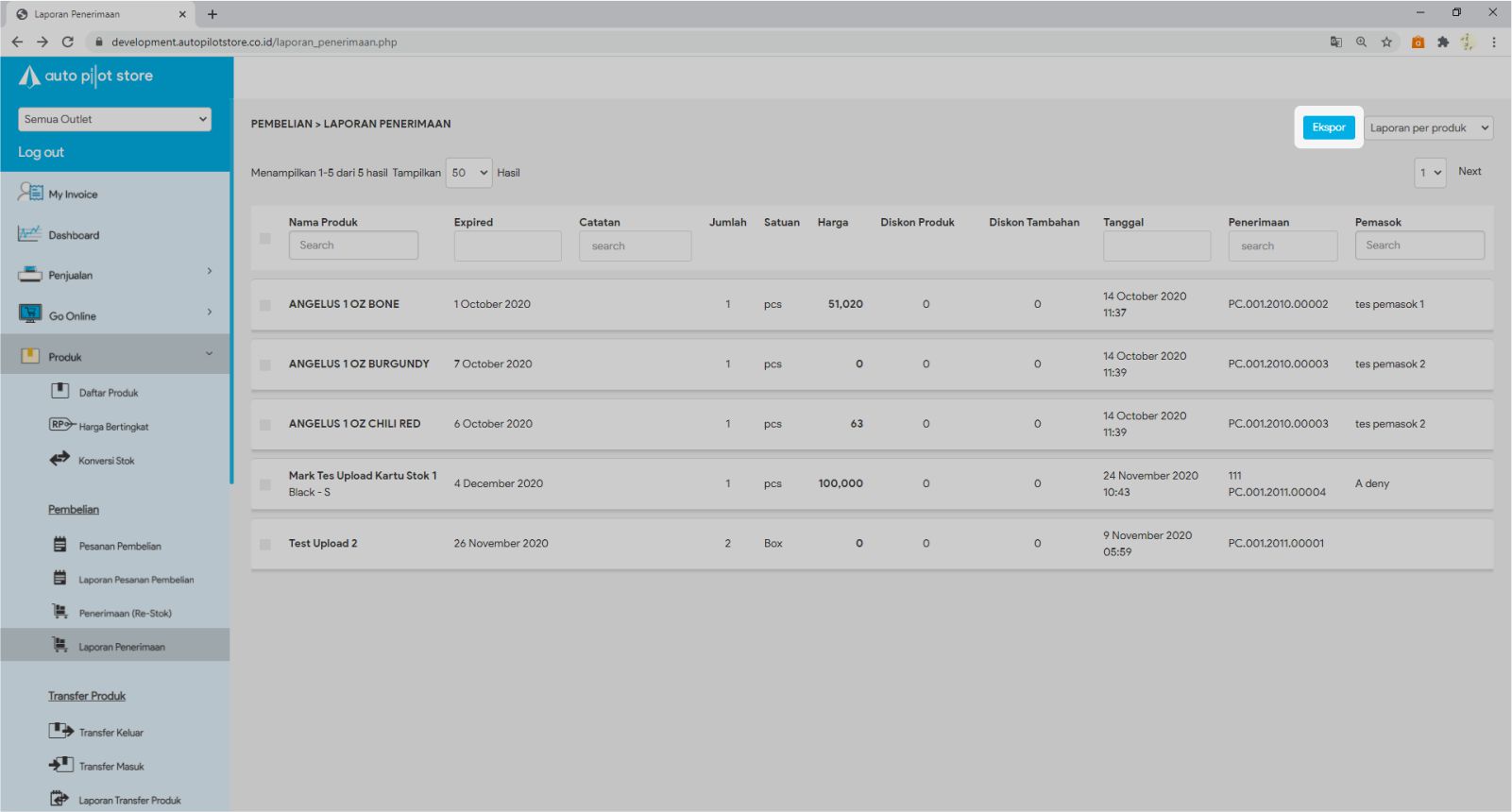 5. Pilih Ekspor untuk menampilkan data dalam format CSV jika diperlukan