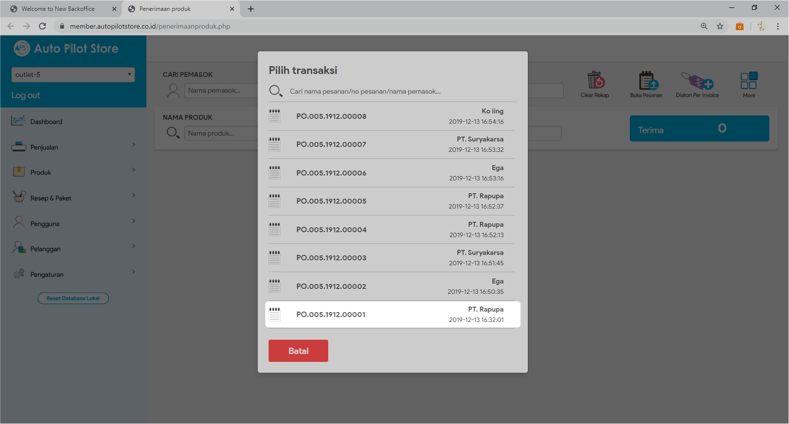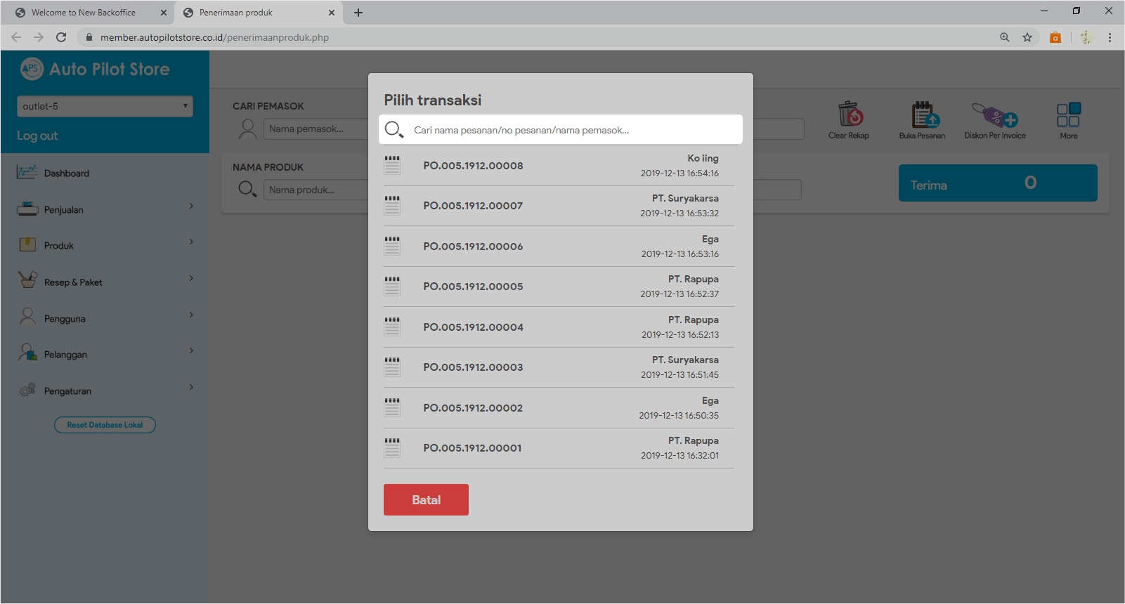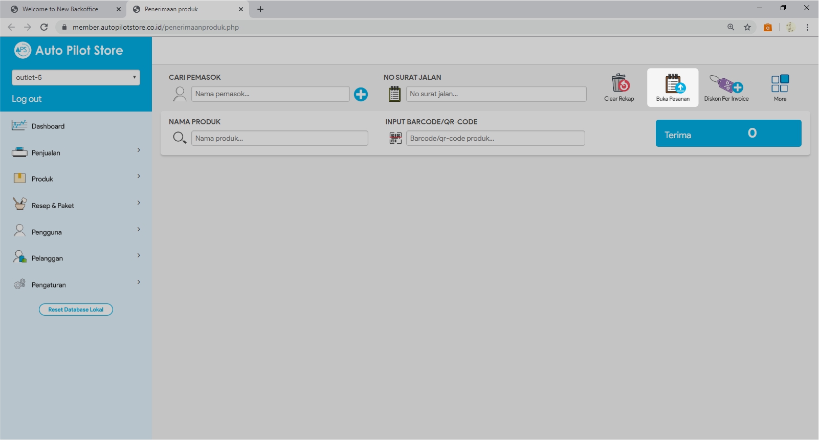 2. Pilih Sub Menu Penerimaan (Re-Stok)