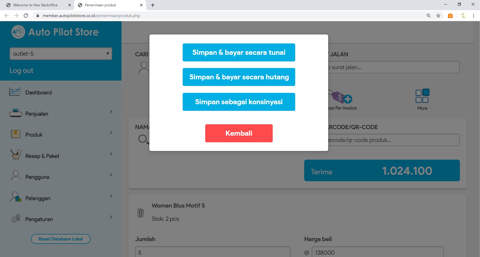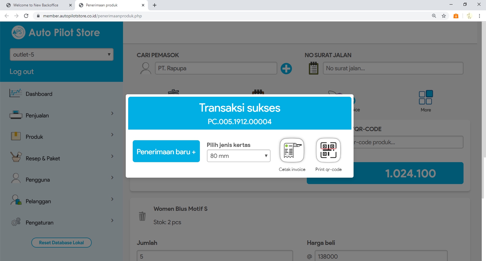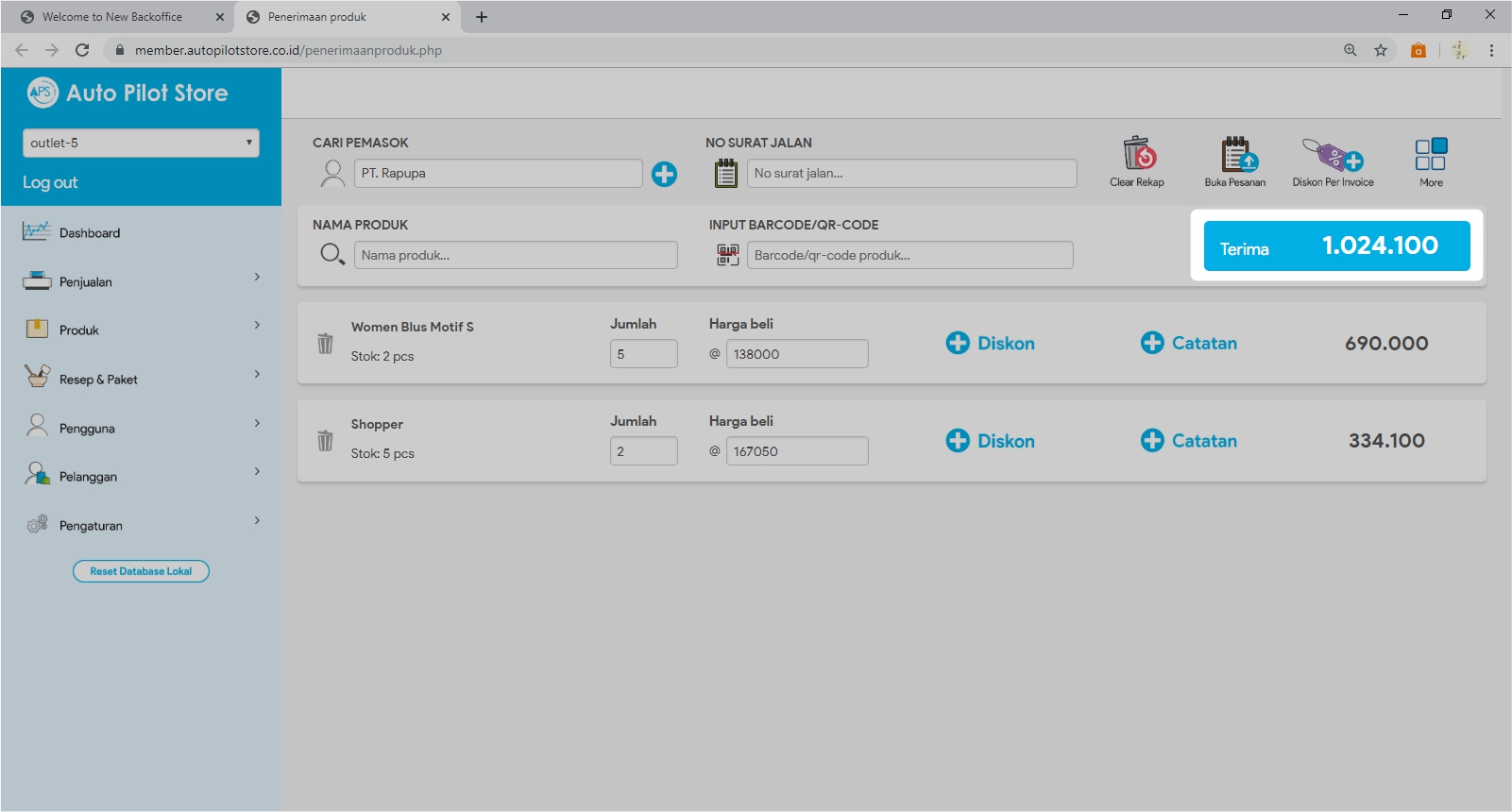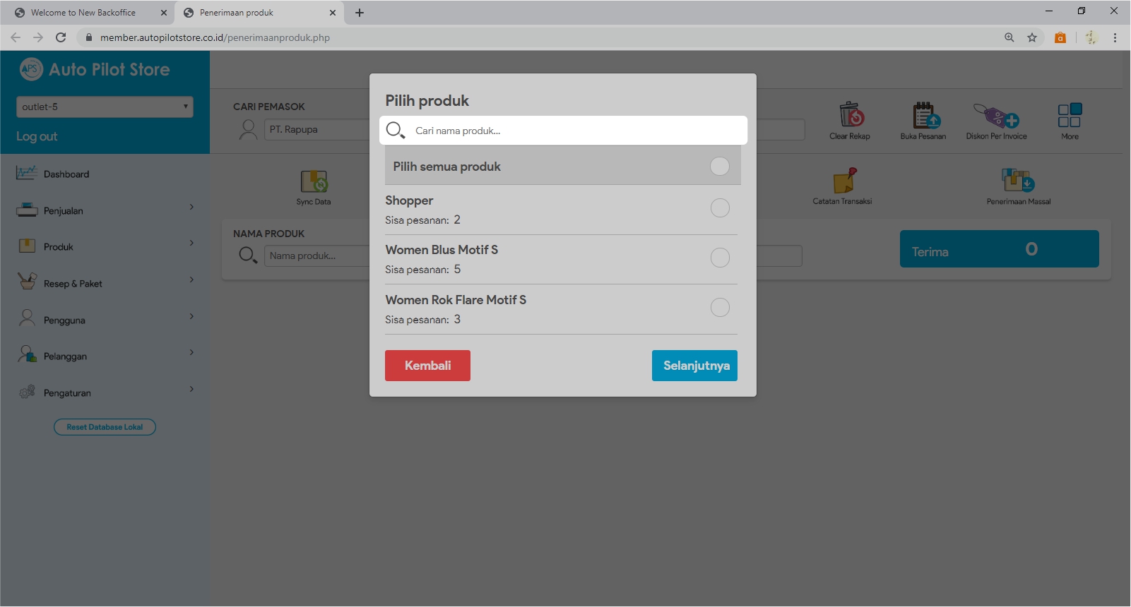2. Pilih Sub Menu Penerimaan (Re-Stok)