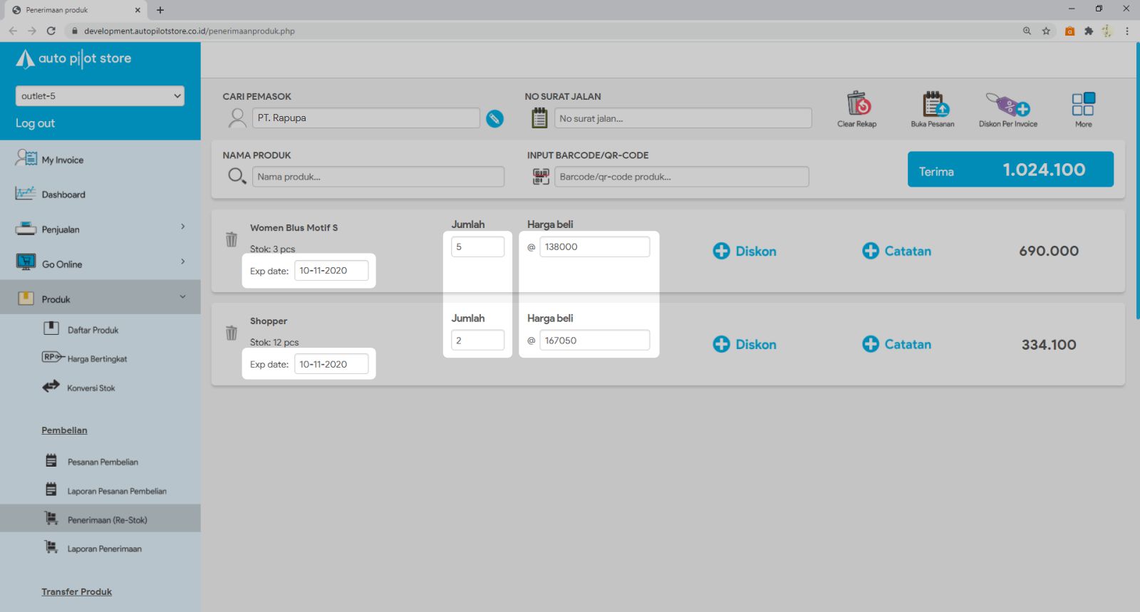 9. Masukkan Jumlah Produk yang diterima dan Expired Date (optional)