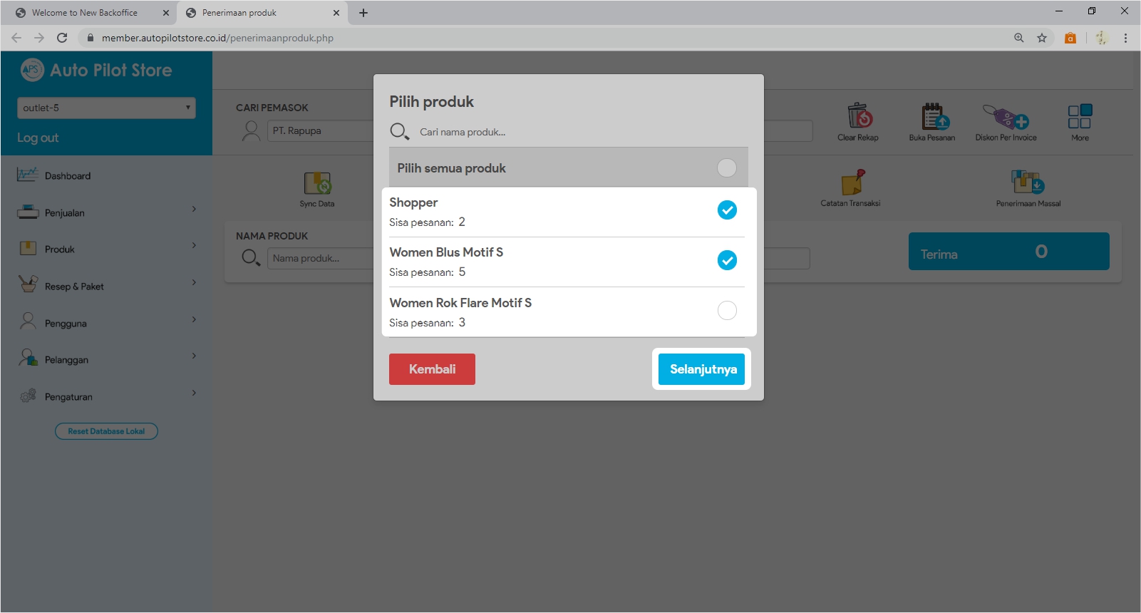 7. Pilih produk yang dimaksud atau pilih semua produk