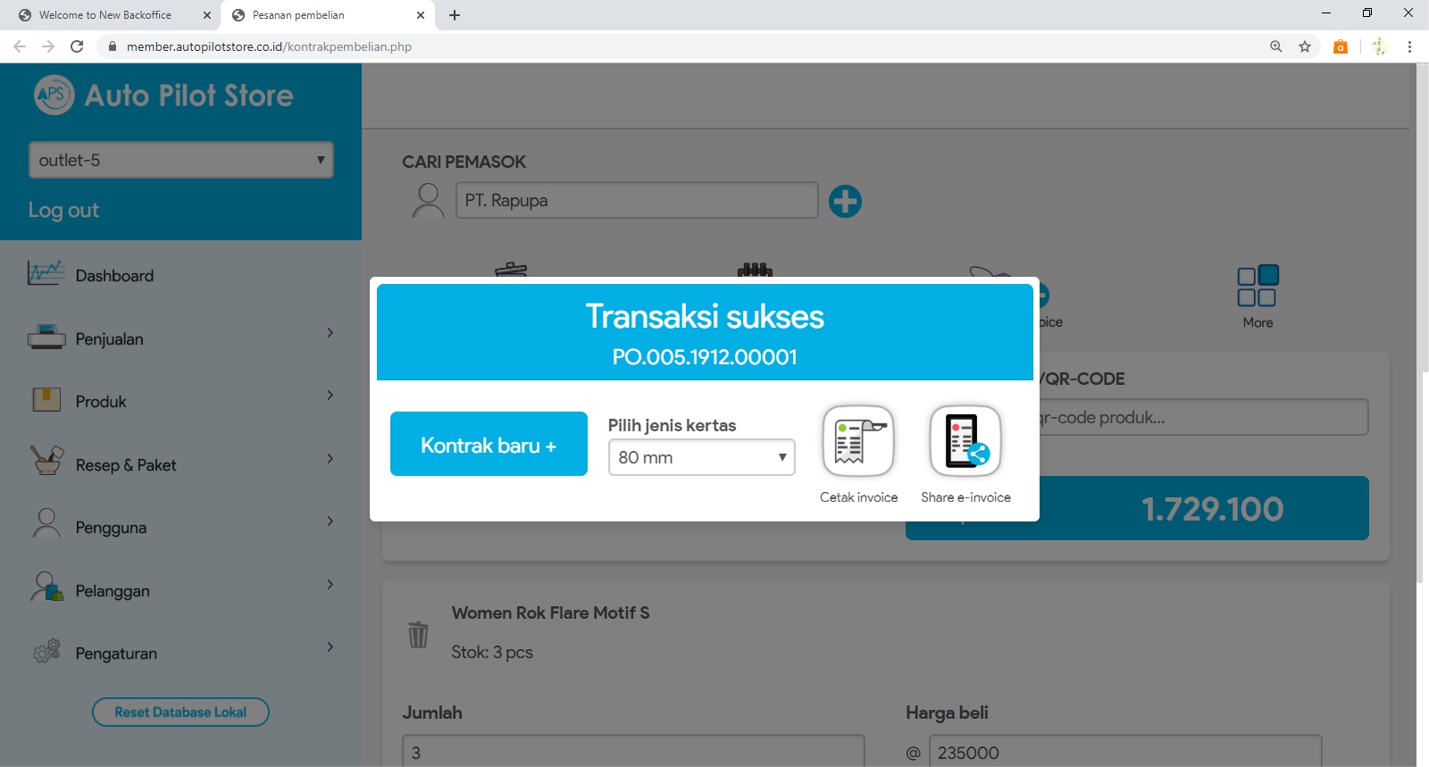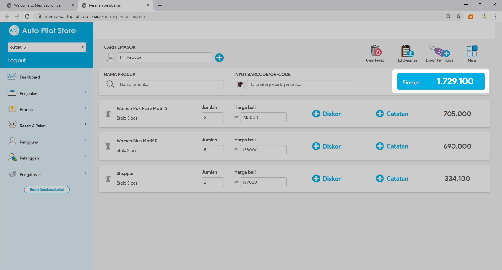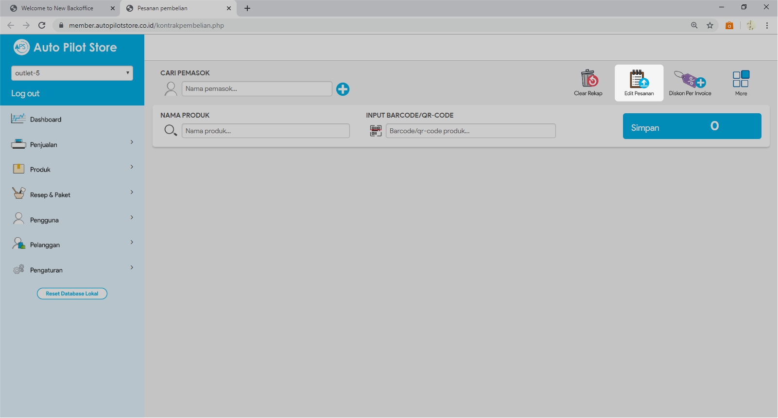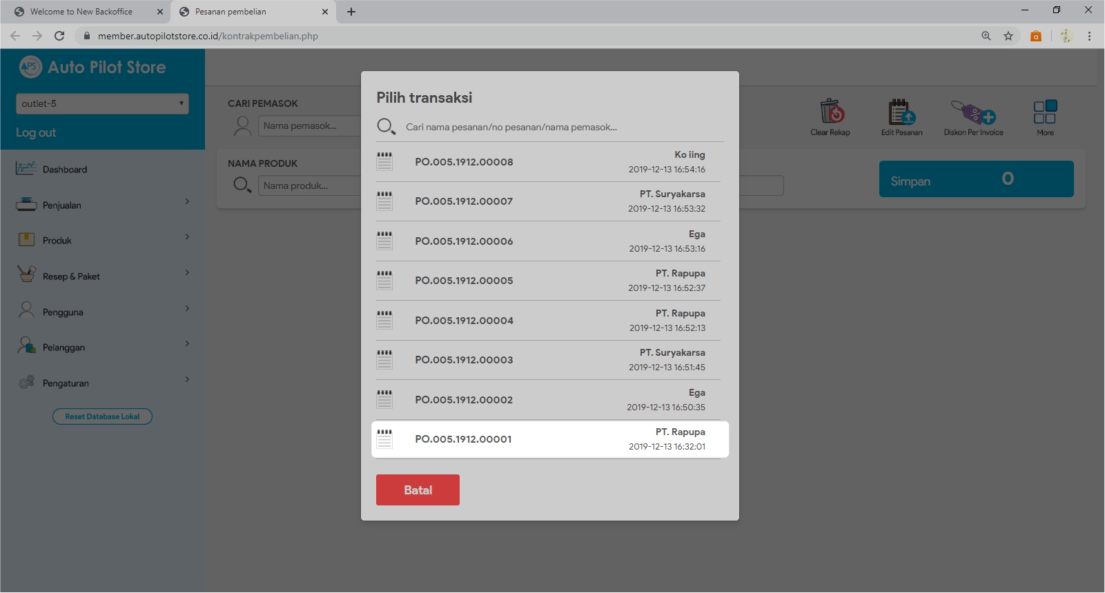4. Masukkan nama pesanan, no pesanan atau nama pemasok pada kolom pencarian