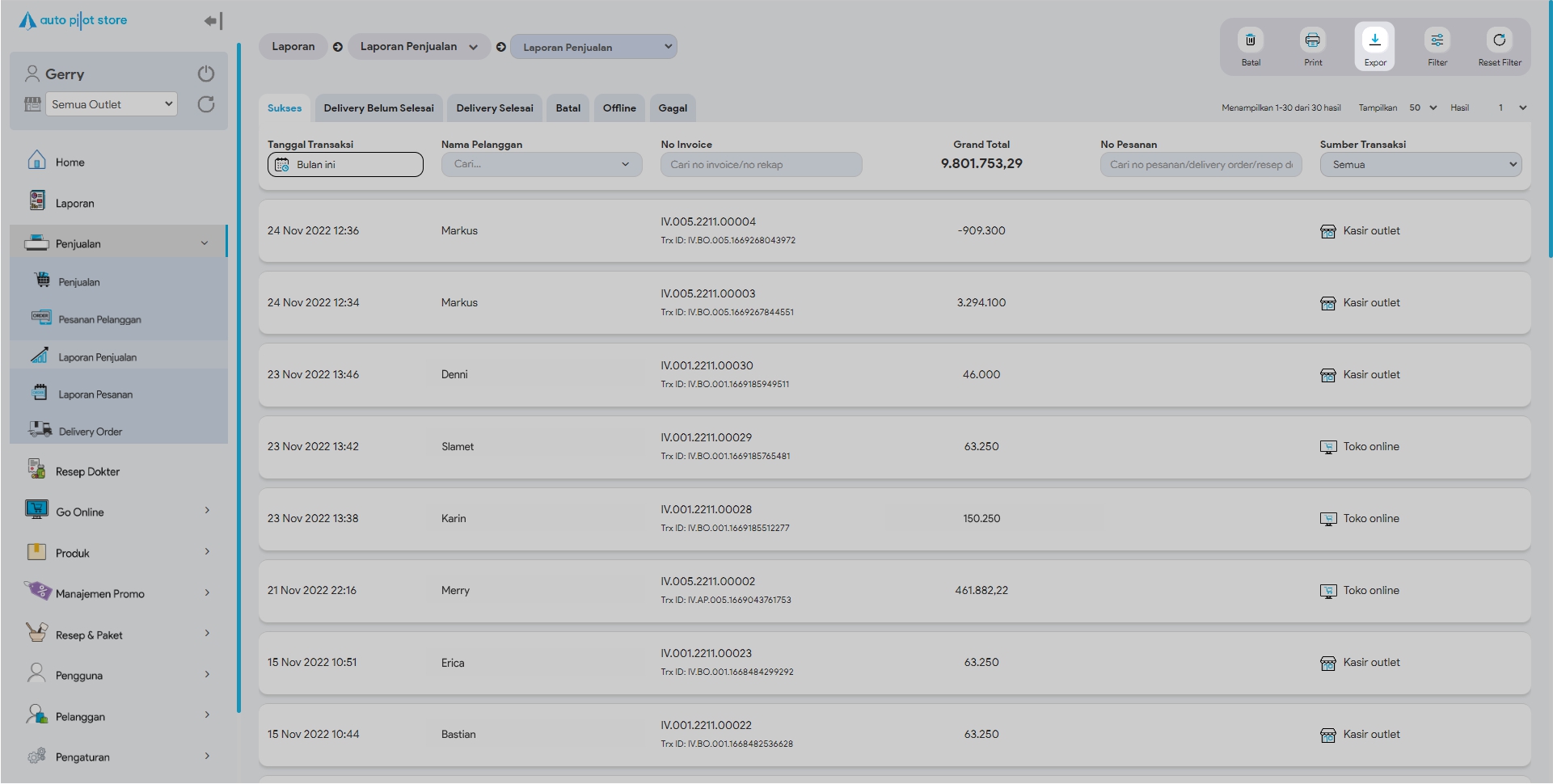 3. Atur terlebih dahulu data penjualan mana saja yang ingin di ekspor ke excel. Apakah untuk semua data atau data tertentu saja, misalkan Rentang Tanggal, Nama Pelanggan tertentu atau Nama Kasir
