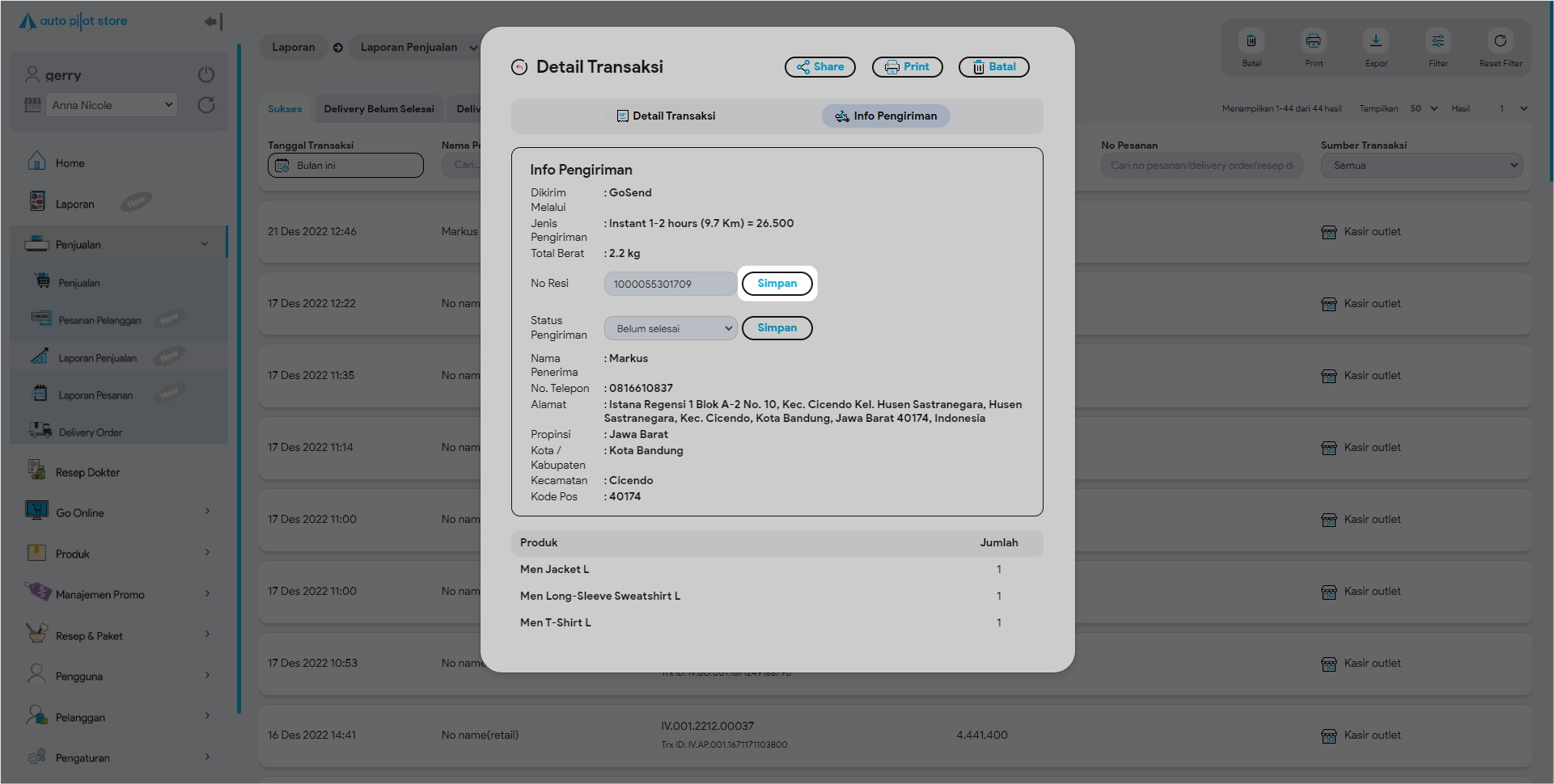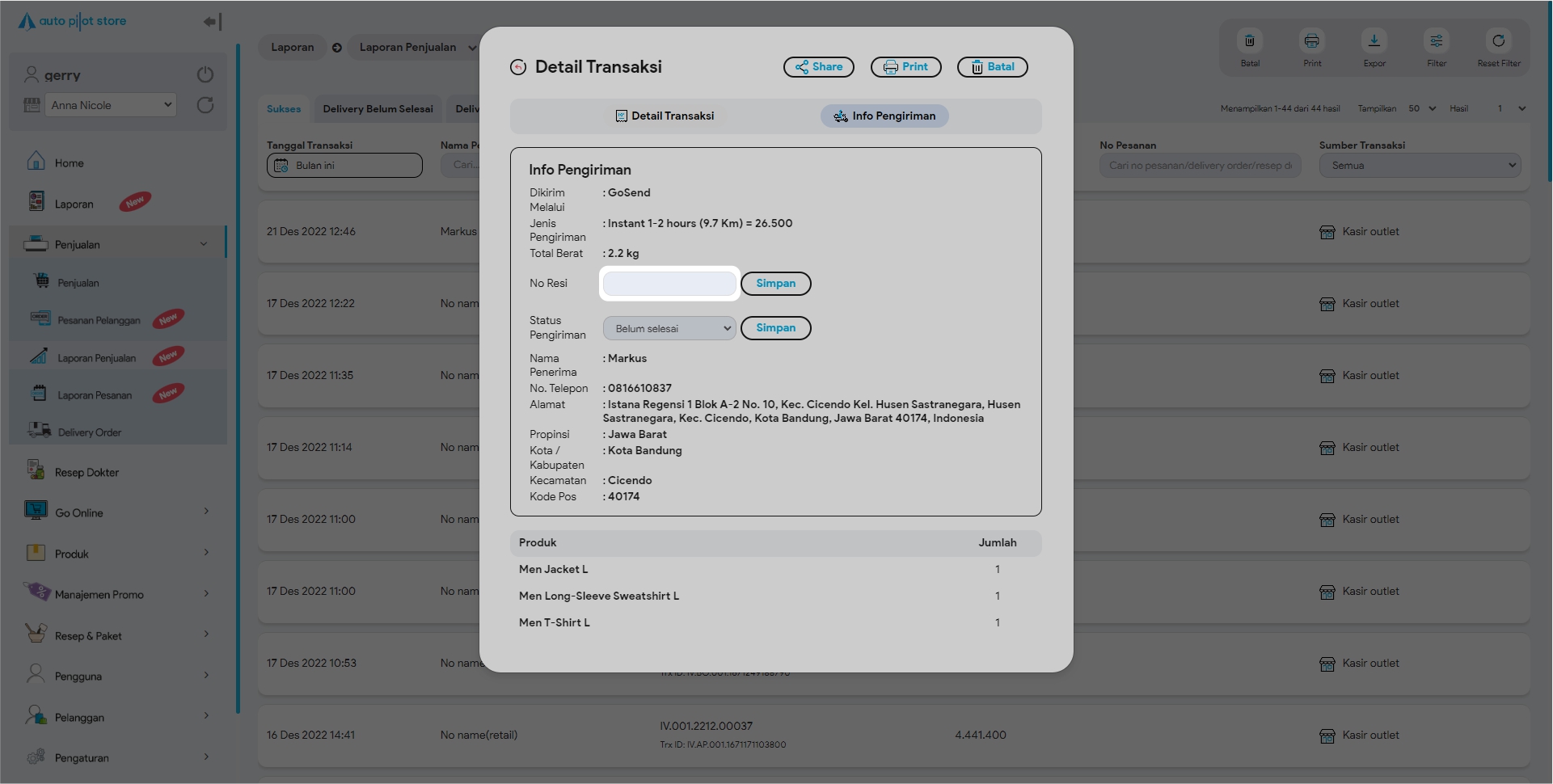 Ini diperuntukkan untuk penjualan yang menggunakan ongkos kirim. Disiplin mengisi nomo resi akan membantu memilah transaksi mana yang sudah di kirim dan transaksi mana yang belum.