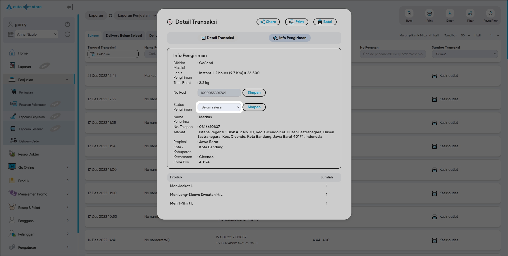 4. Pilih transaksi mana yang ingin Anda update status ekspedisinya.