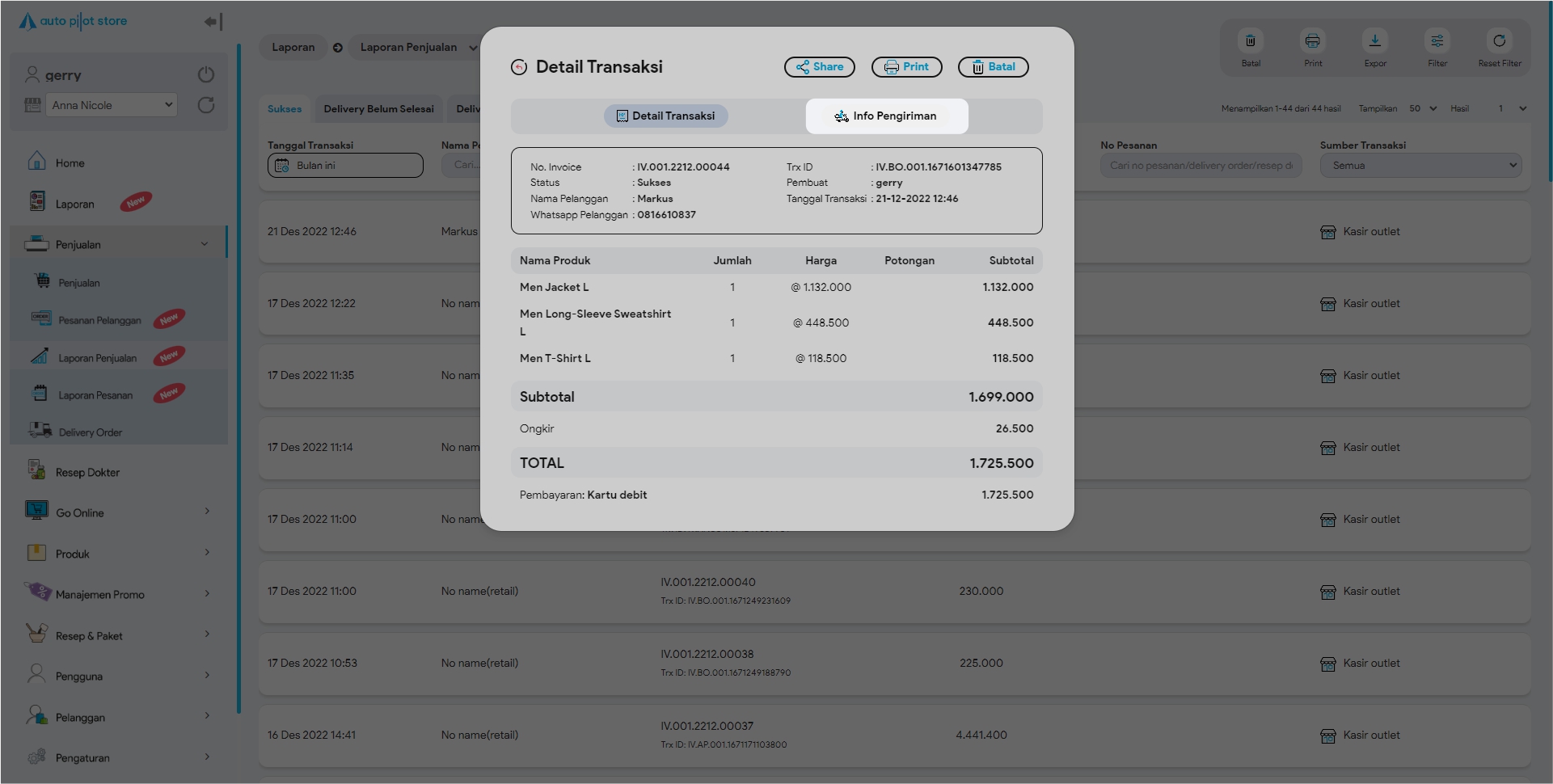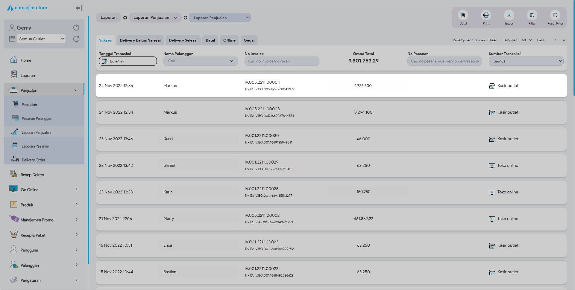 3. Cari transaksi penjualan yang hendak di update status nya (melalui pembatasan Filter jika diperlukan)