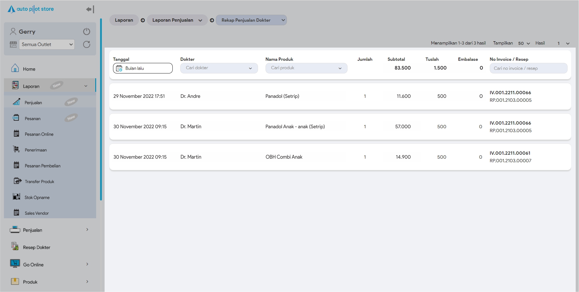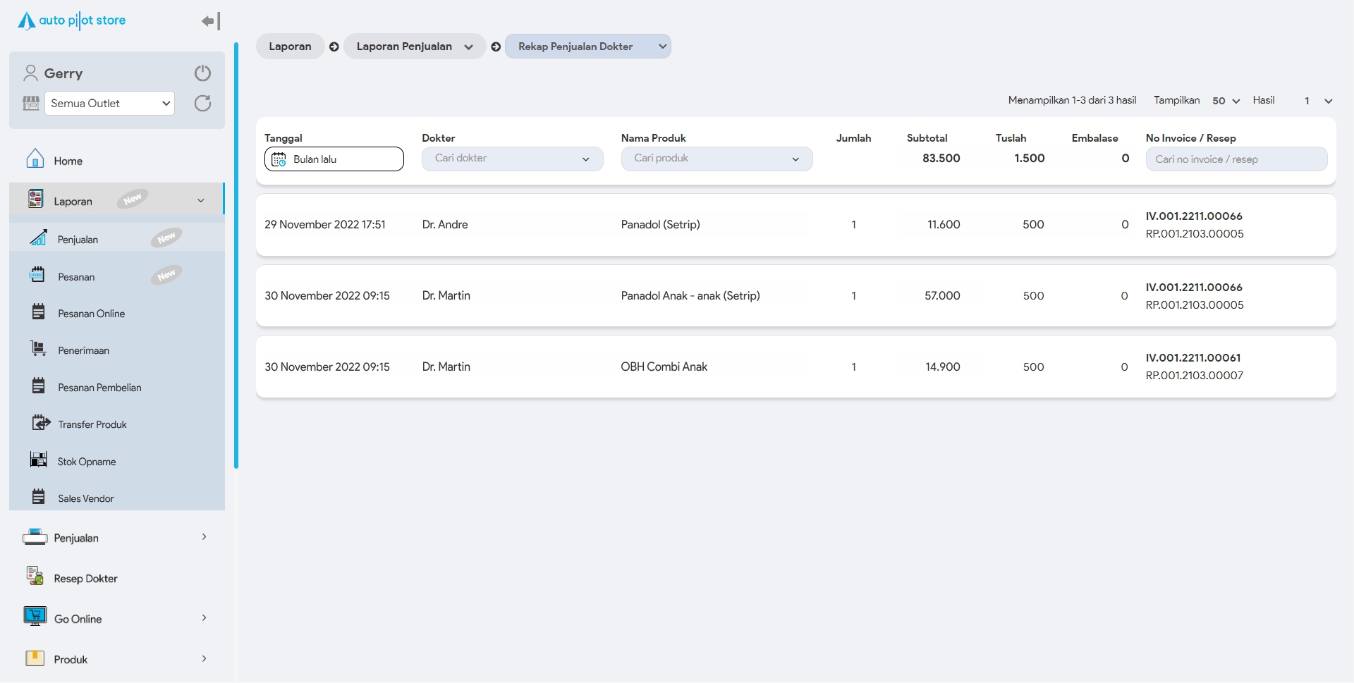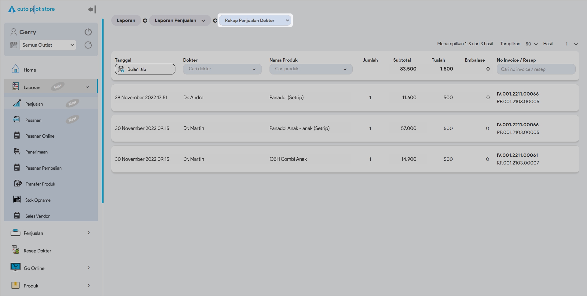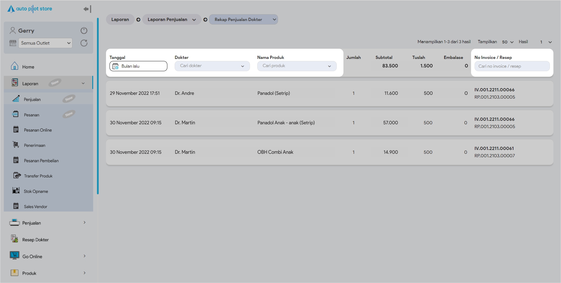 Laporan ini dapat diakses apabila outlet telah mengaktifkan manajemen resep dokter