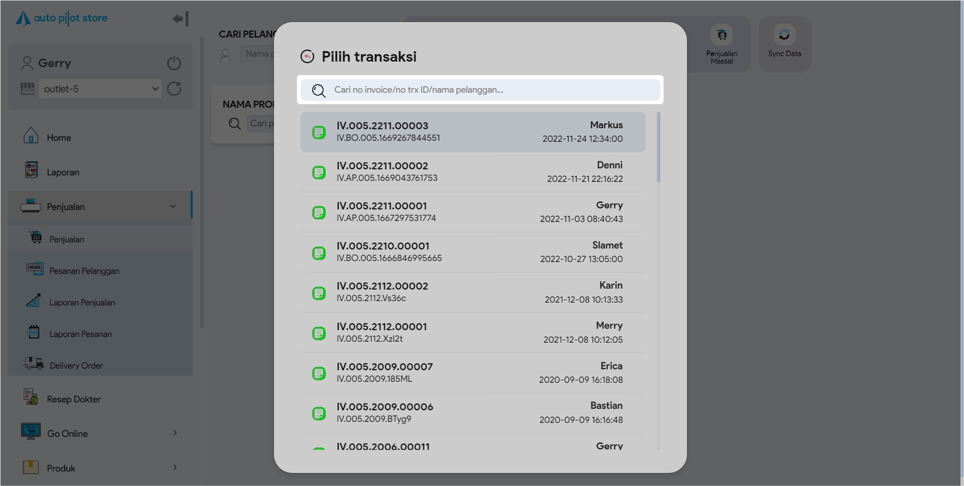 5. Pilih transaksi penjualan tersebut