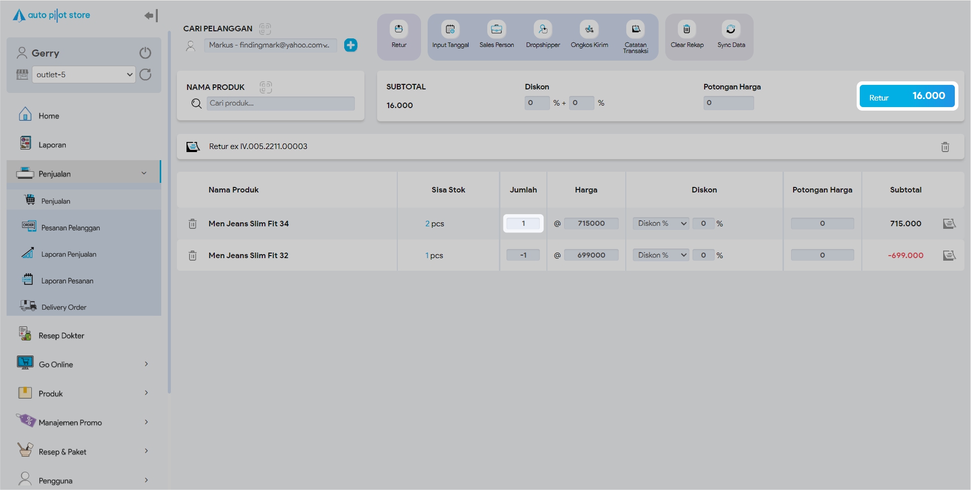 3. Pilih Retur