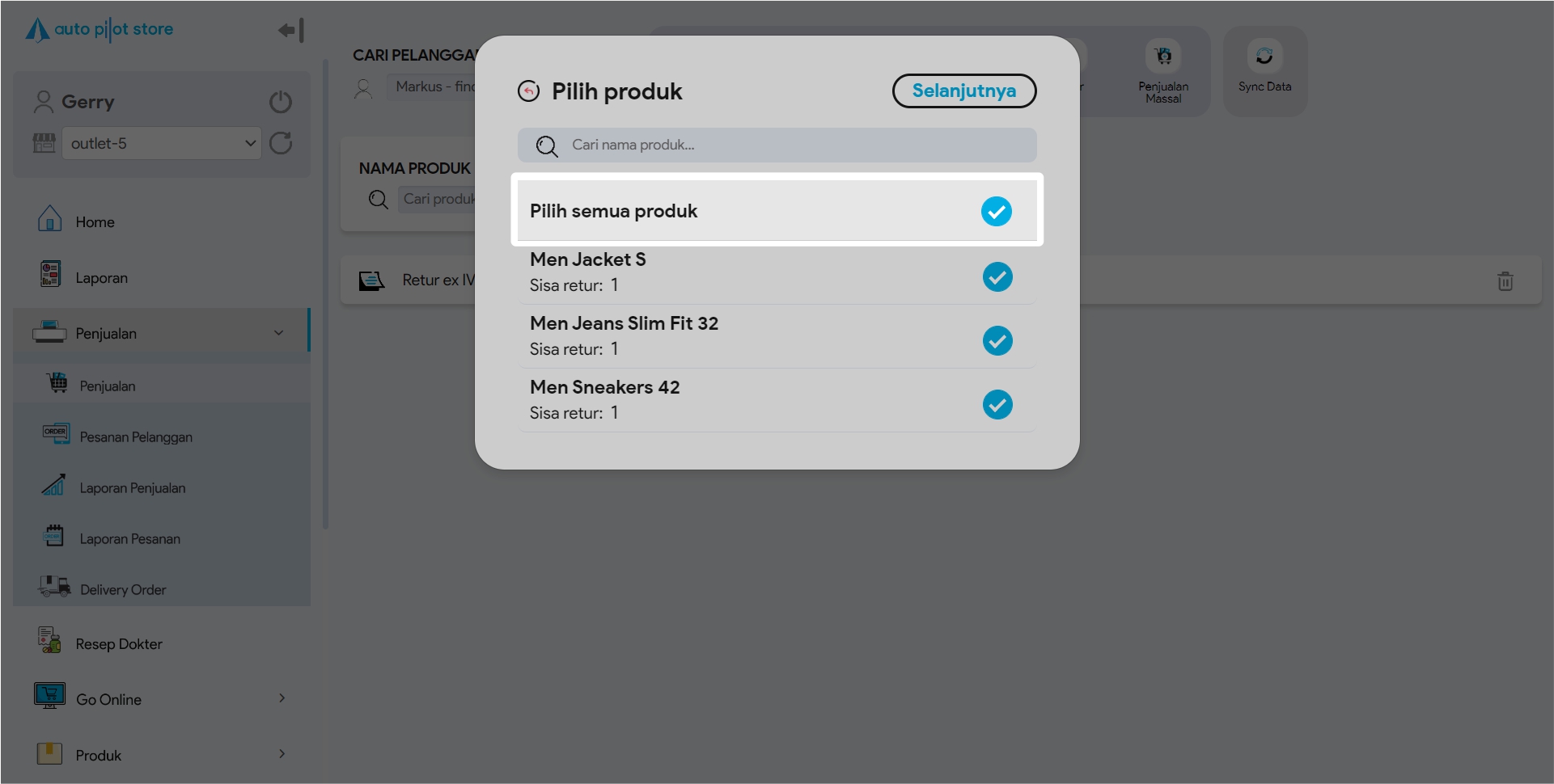 7. Klik Pilih semua jika seluruh produk dalam satu transaksi tersebut akan diretur
