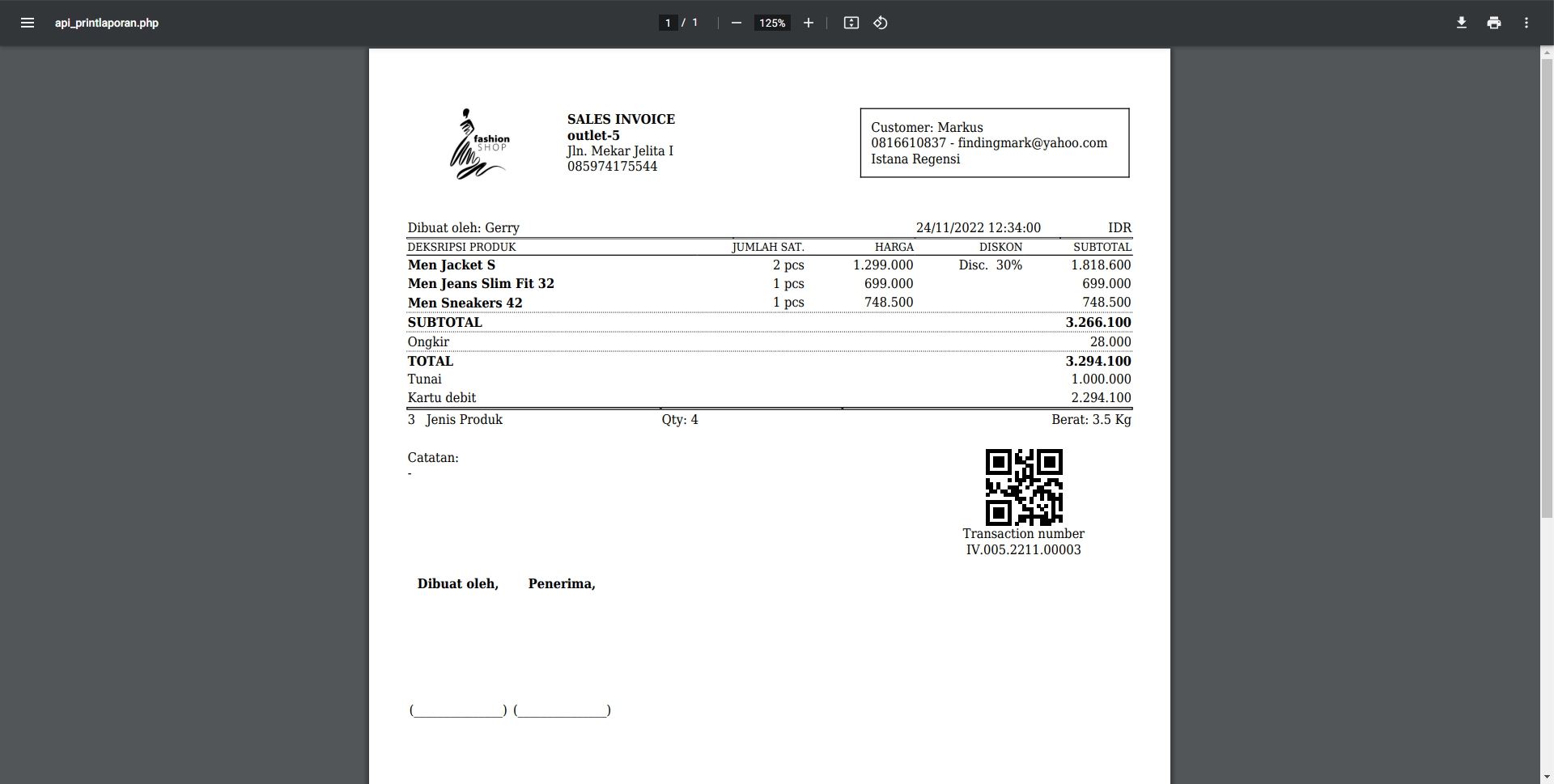 8. Berikut tampilan invoice yang akan dicetak