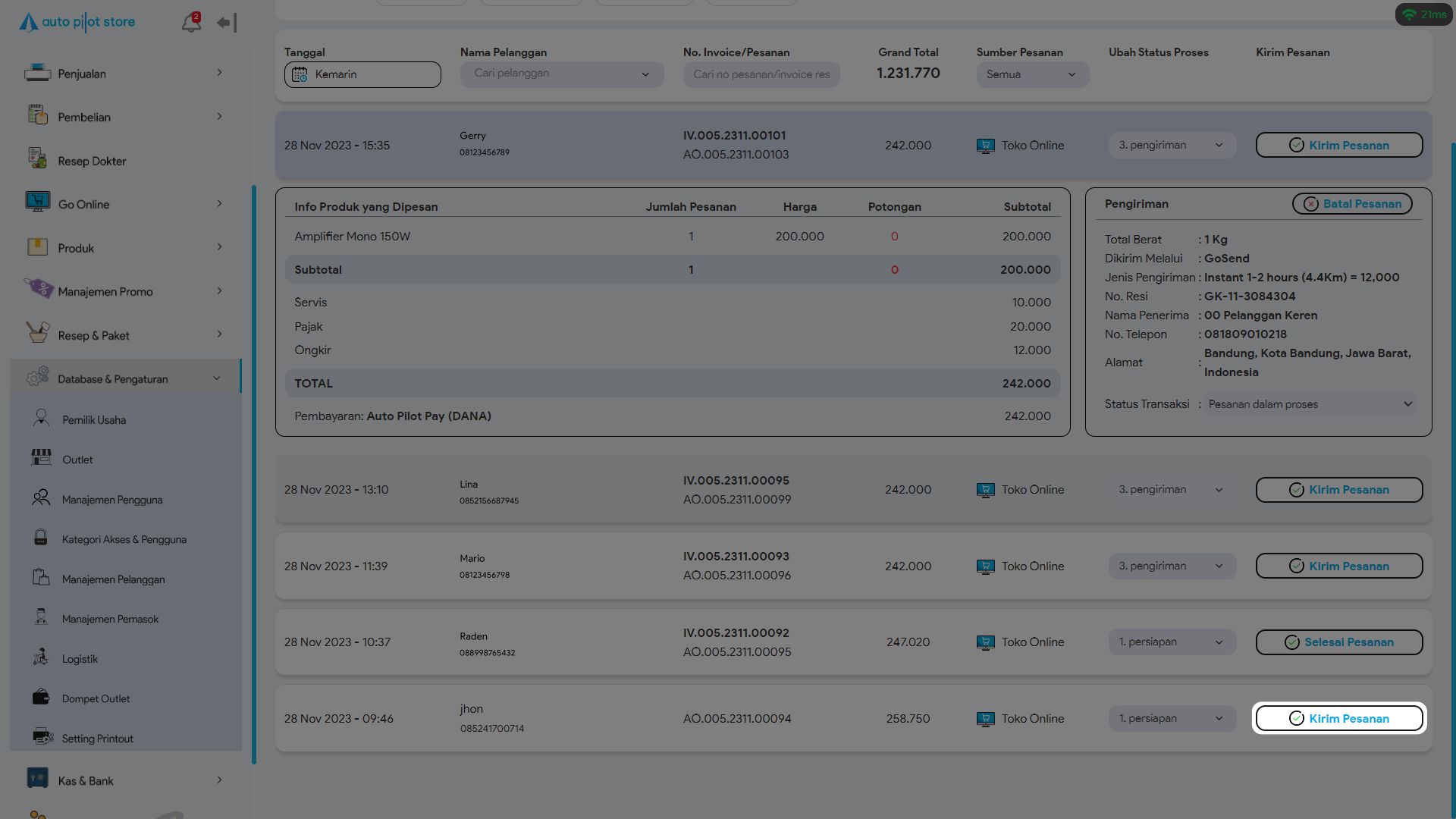 Klik button Kirim Pesanan