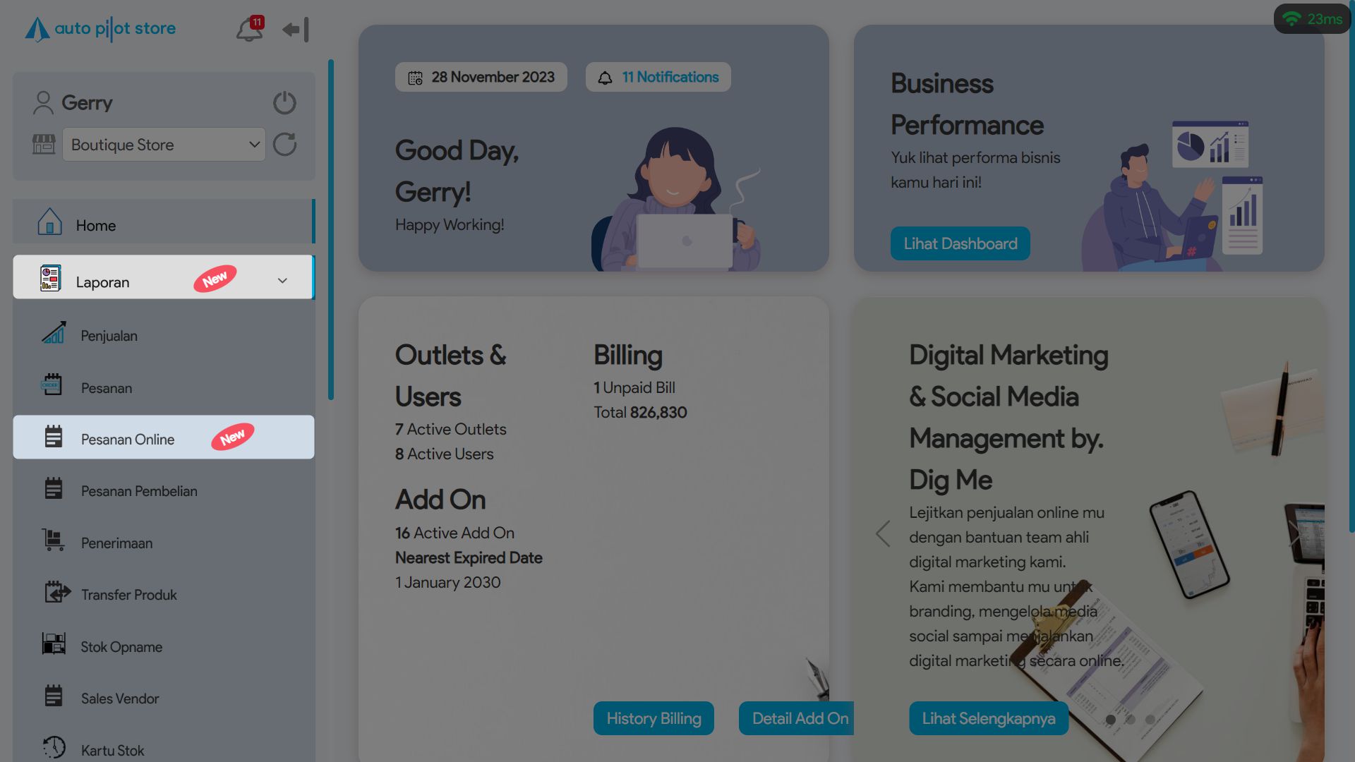 2. Pilih Sub Menu Pesanan Online