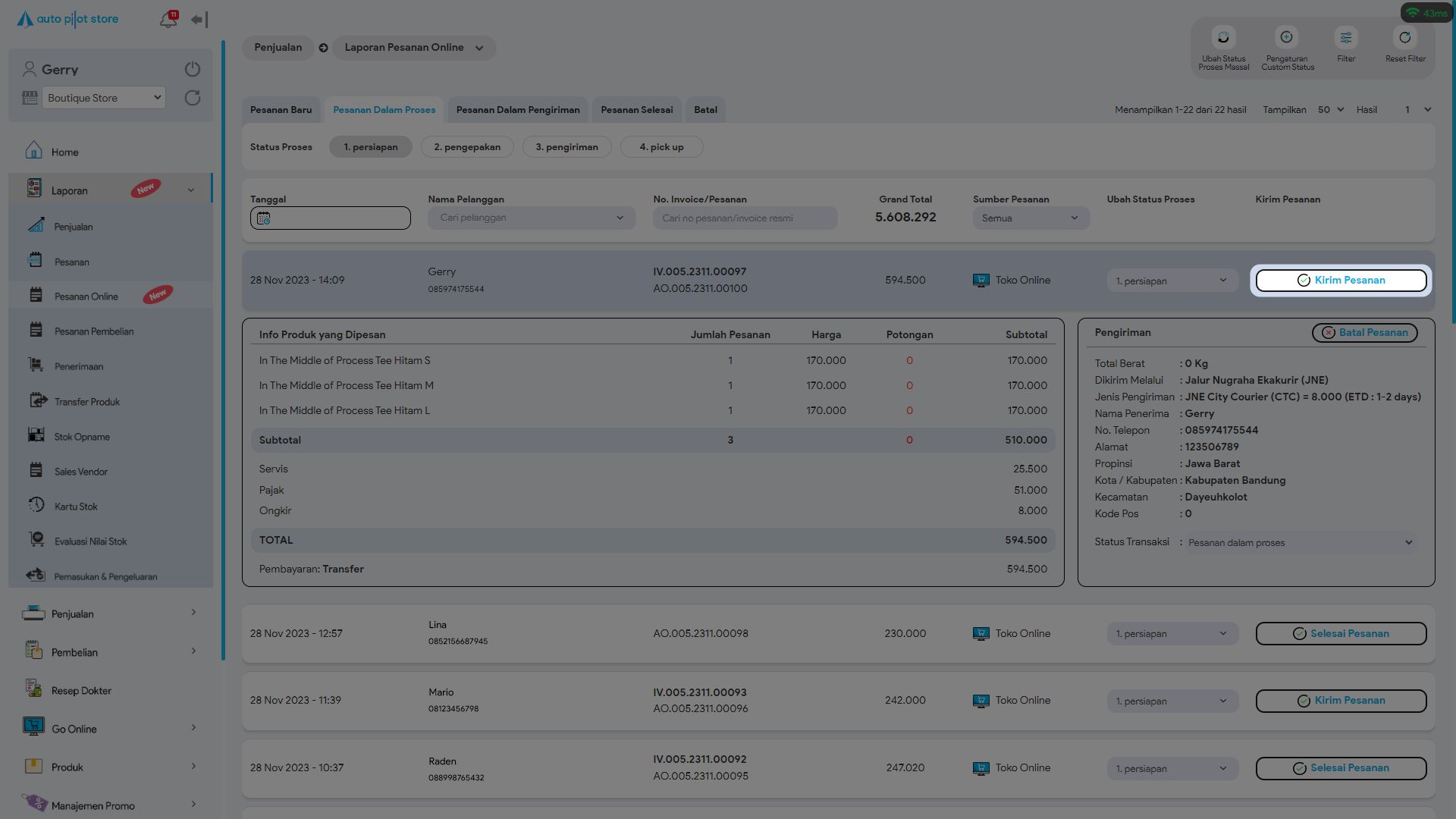 8. Jika sudah memproses pesanan tersebut, silahkan klik Kirim Pesanan