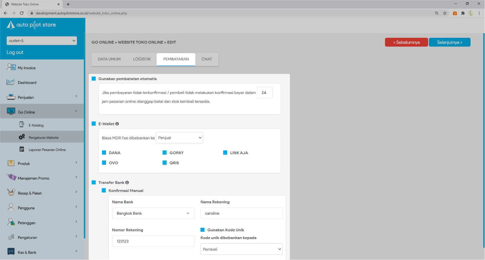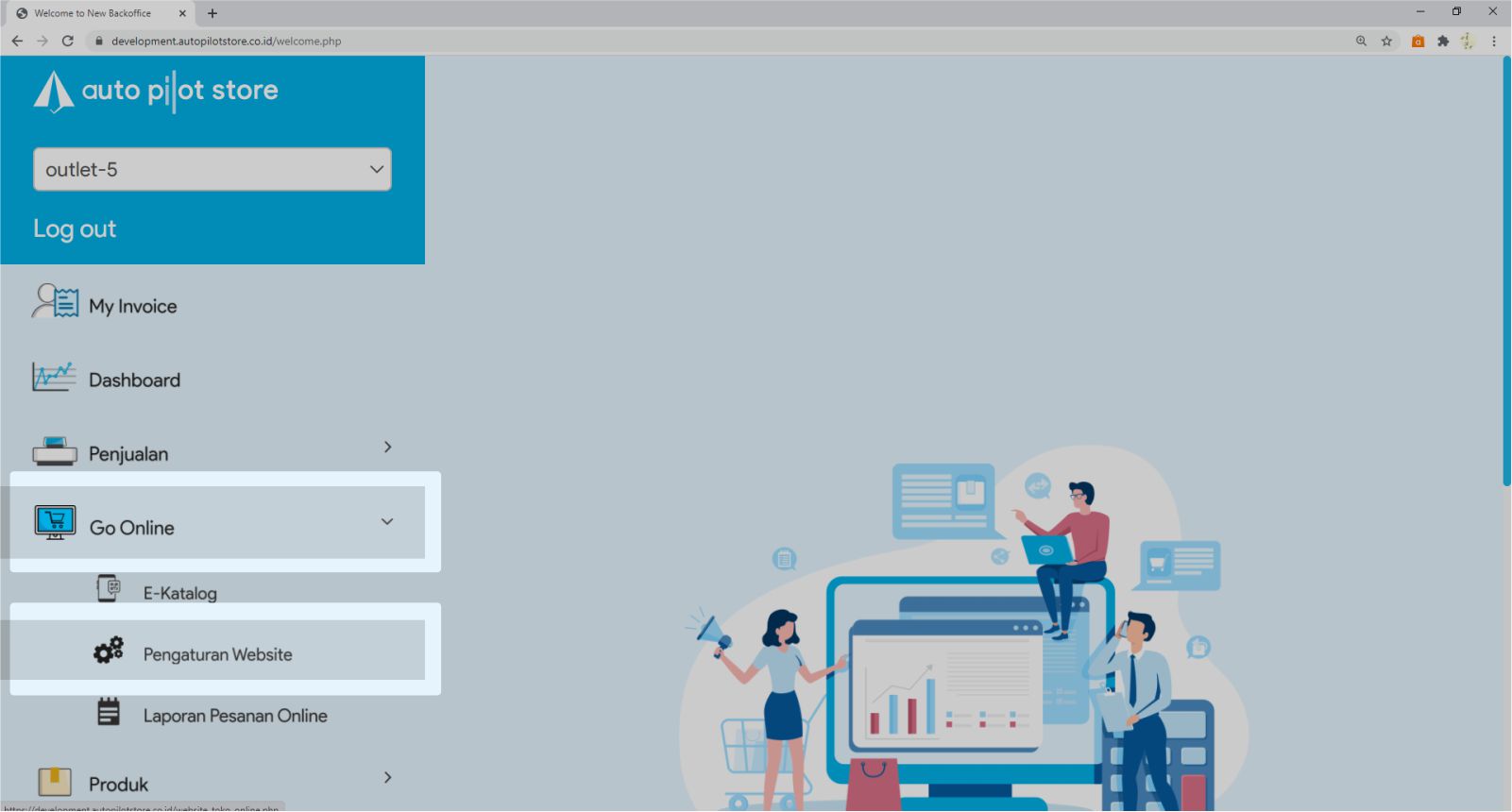 1. Masuk ke menu Go Online & Pilih sub menu Pengaturan Website