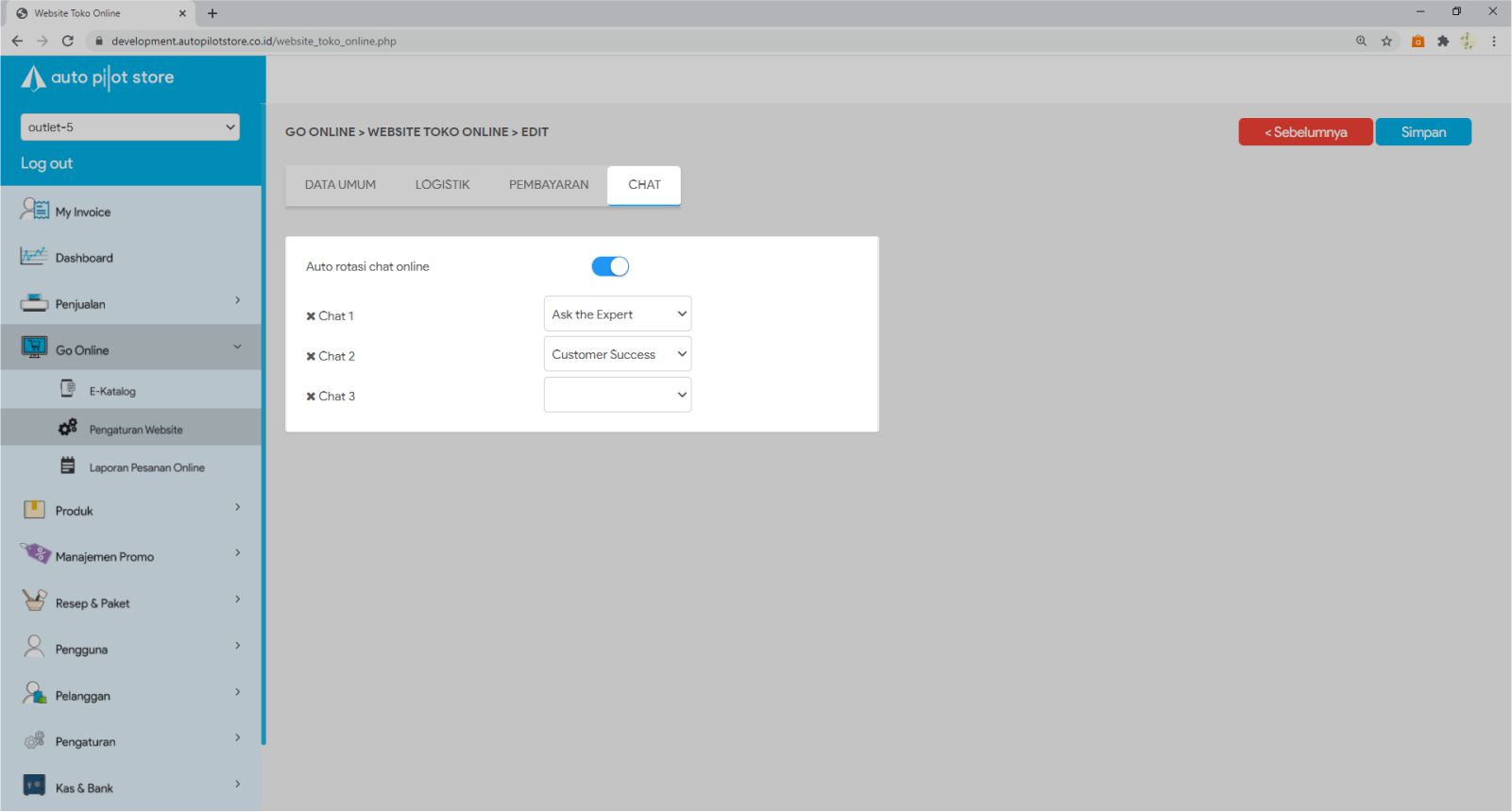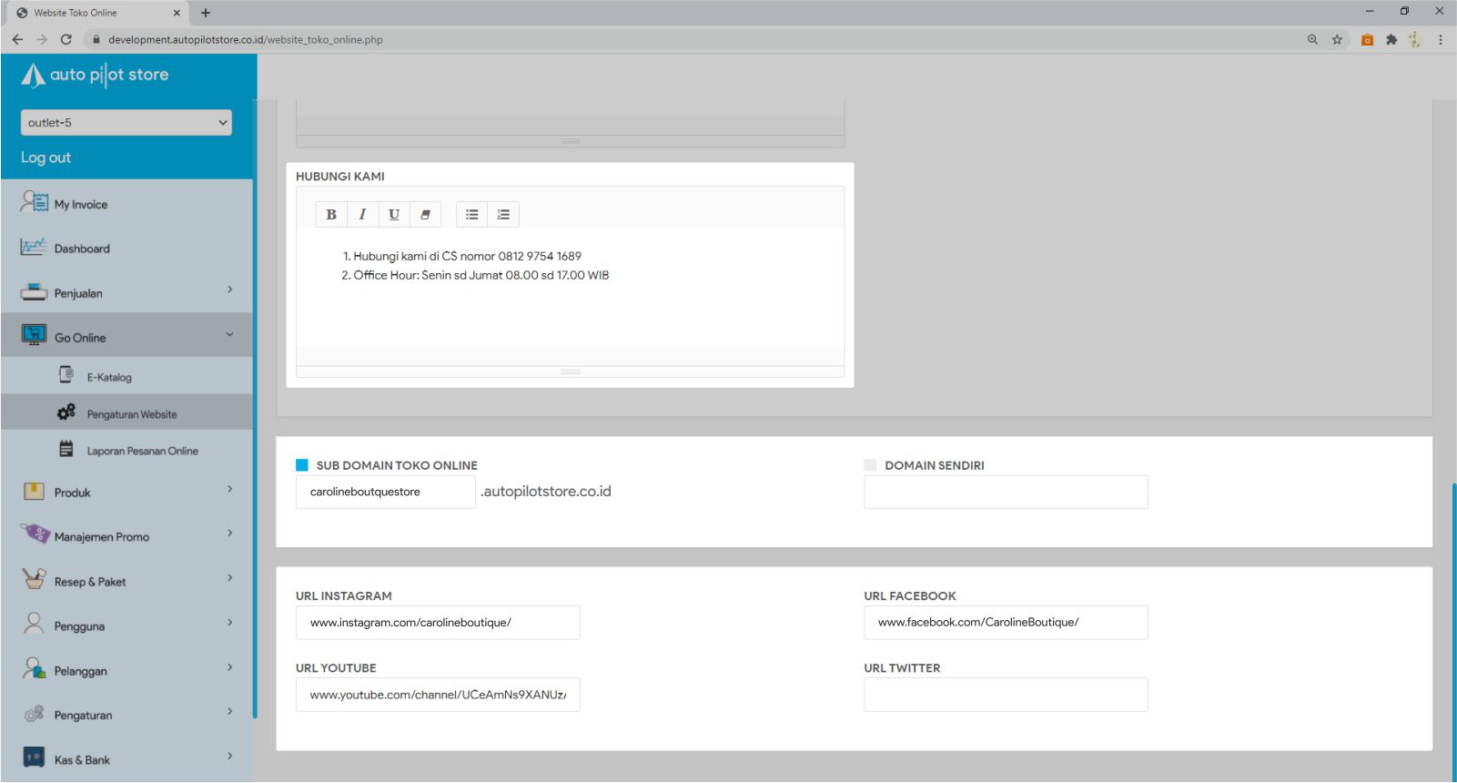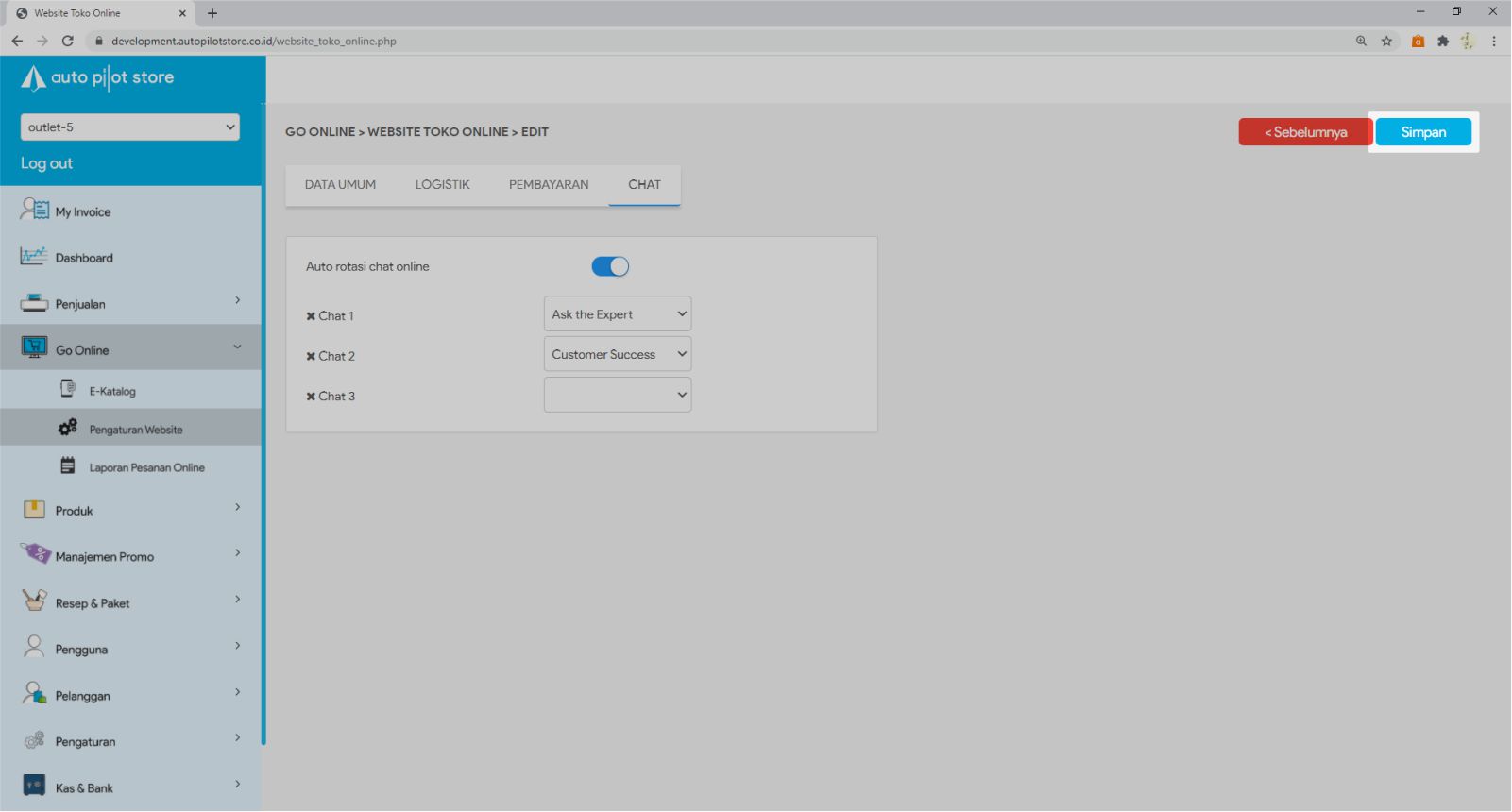 8. Klik tombol SIMPAN untuk menyimpan pengaturan toko online yang Anda lakukan