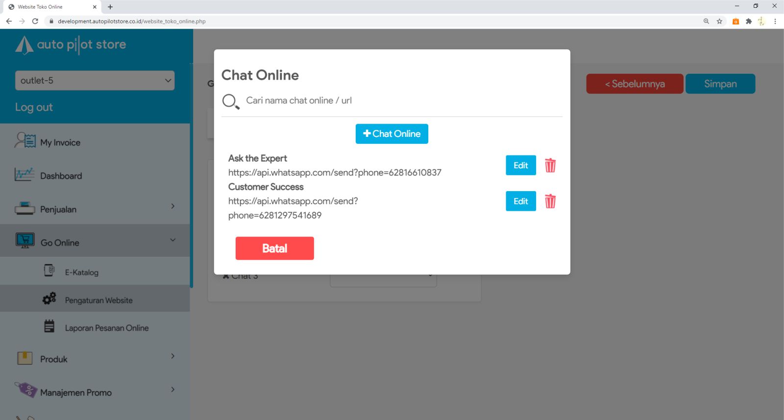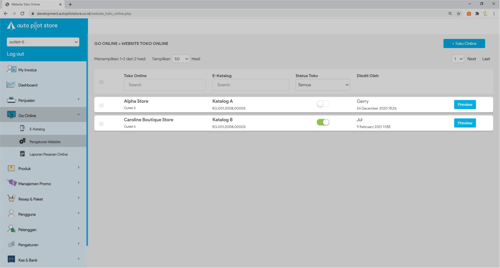 3. Klik nama toko online untuk melakukan pengaturan terhadap toko online tersebut
