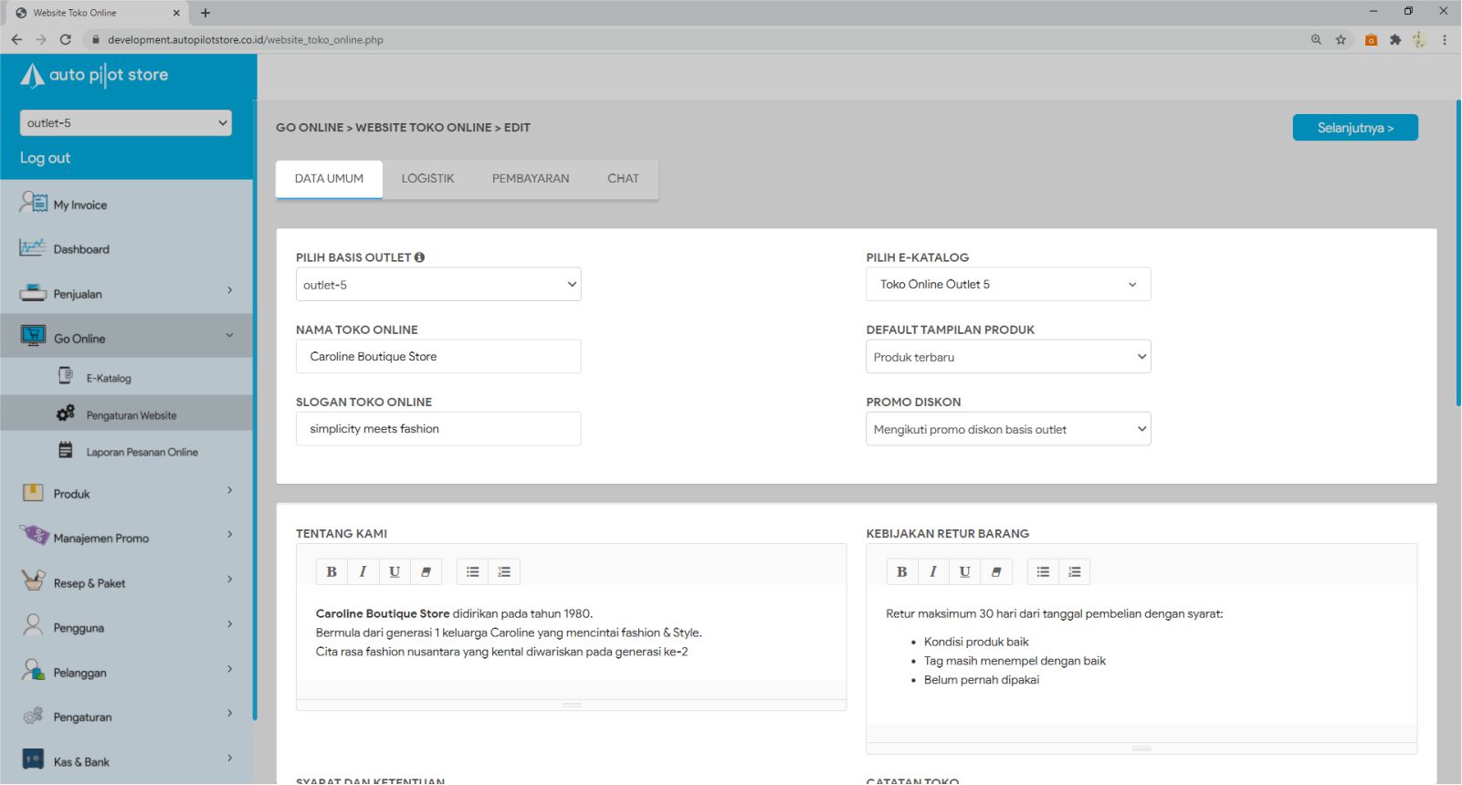 Anda dapat mengatur toko online Anda sebagai berikut :
