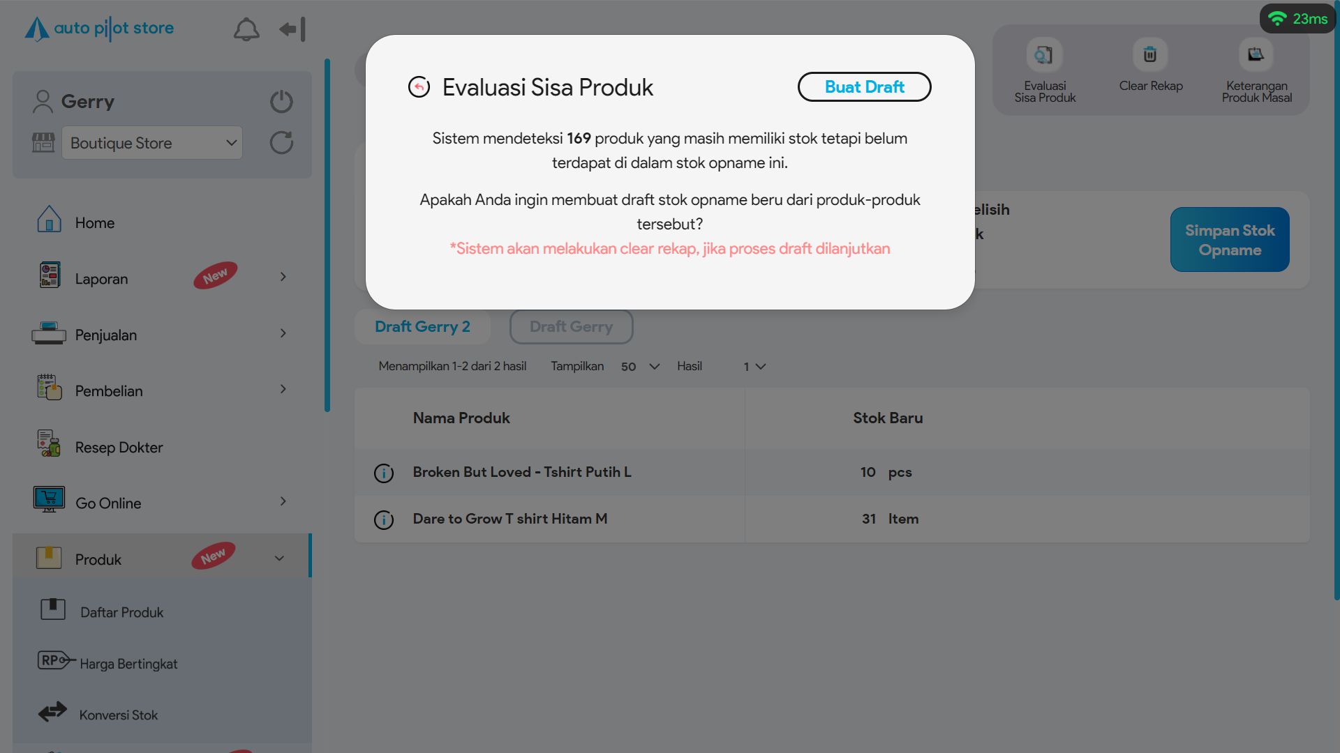 Jika Anda ingin membuat draft dari produk-produk tersebut, sistem akan melakukan clear rekap dari merging draft yang sedang Anda lakukan.