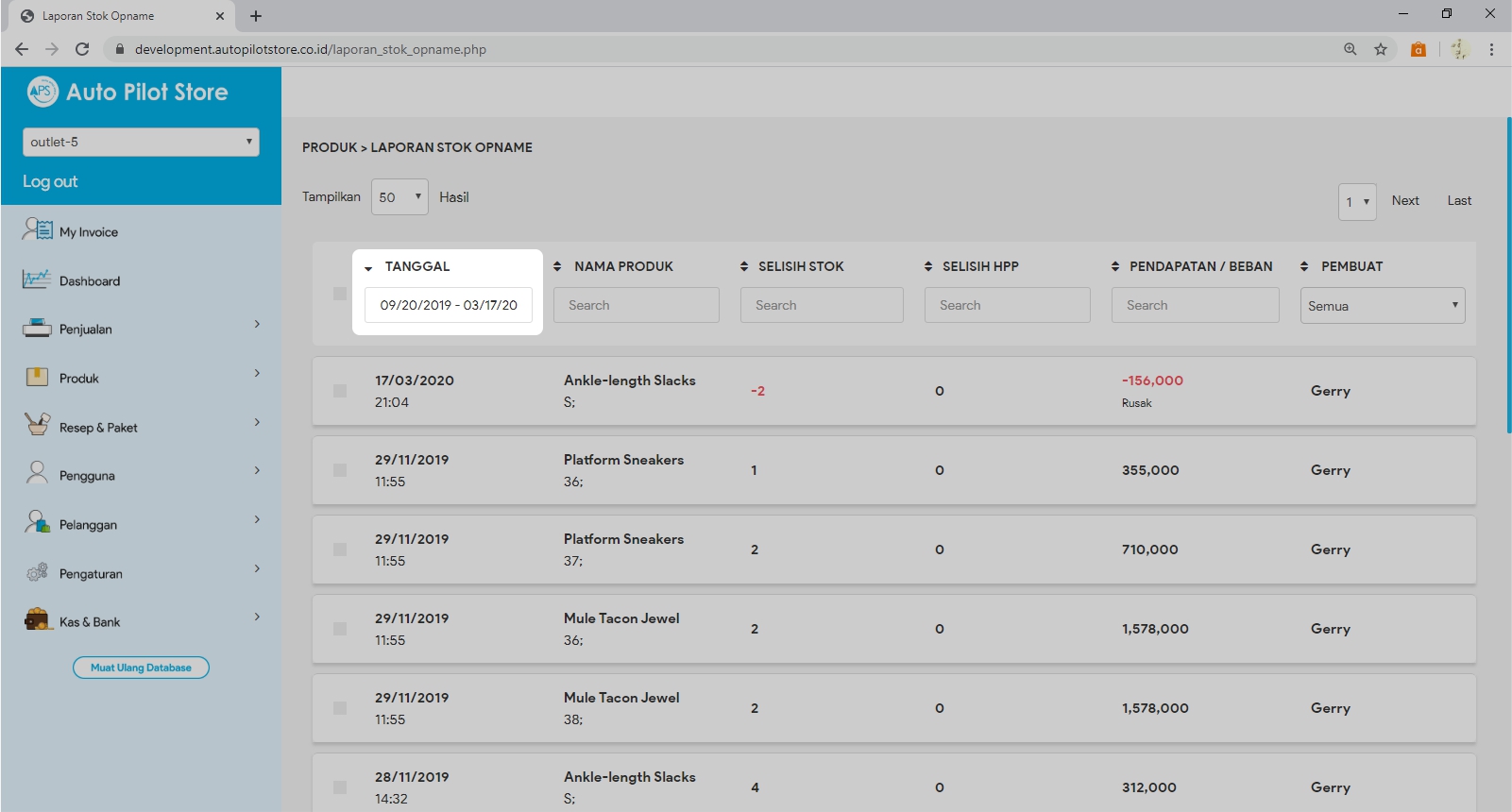 3. Atur Tanggal (awal dan akhir) bila ingin mengetahui perubahan jumlah stok dan perubahan harga HPP pada periode waktu tertentu