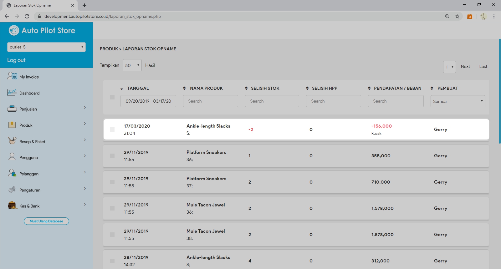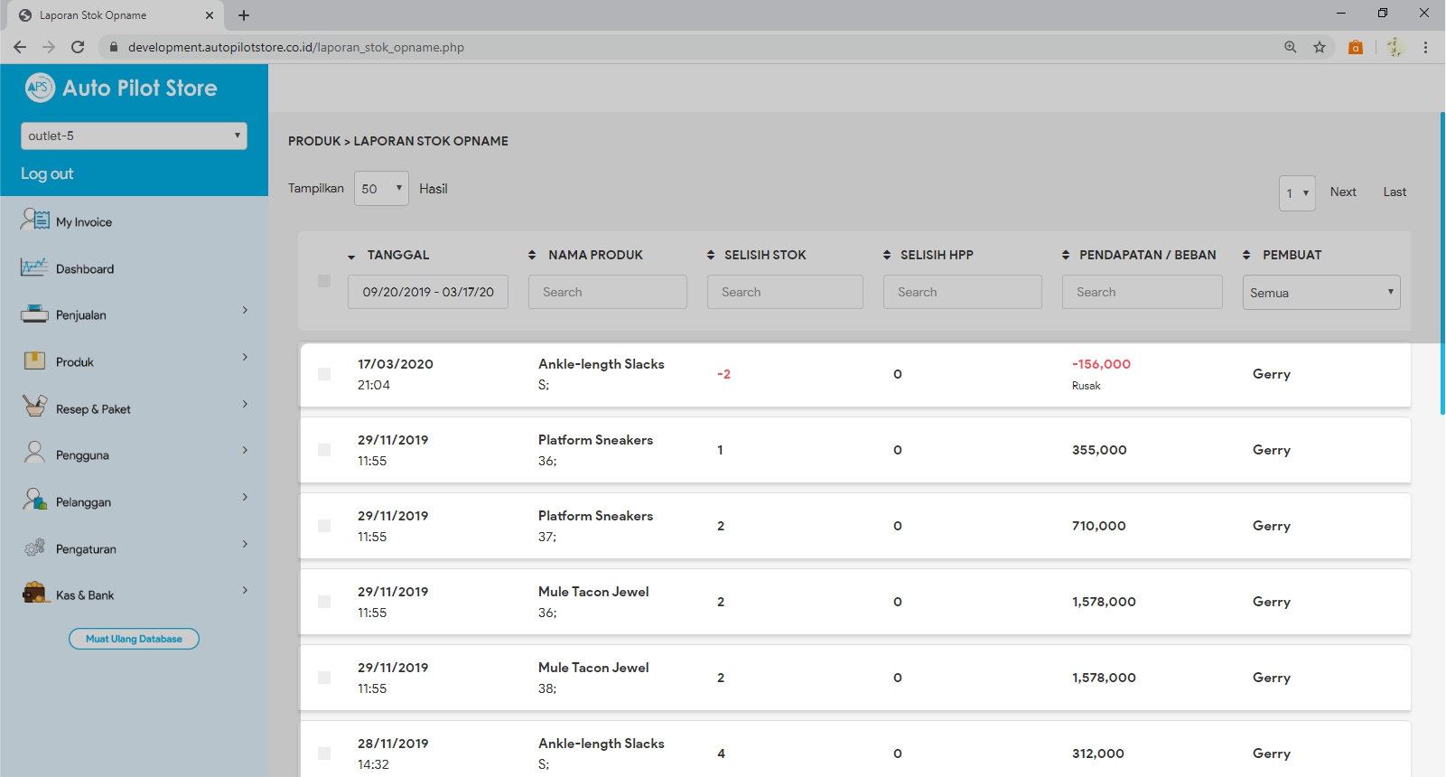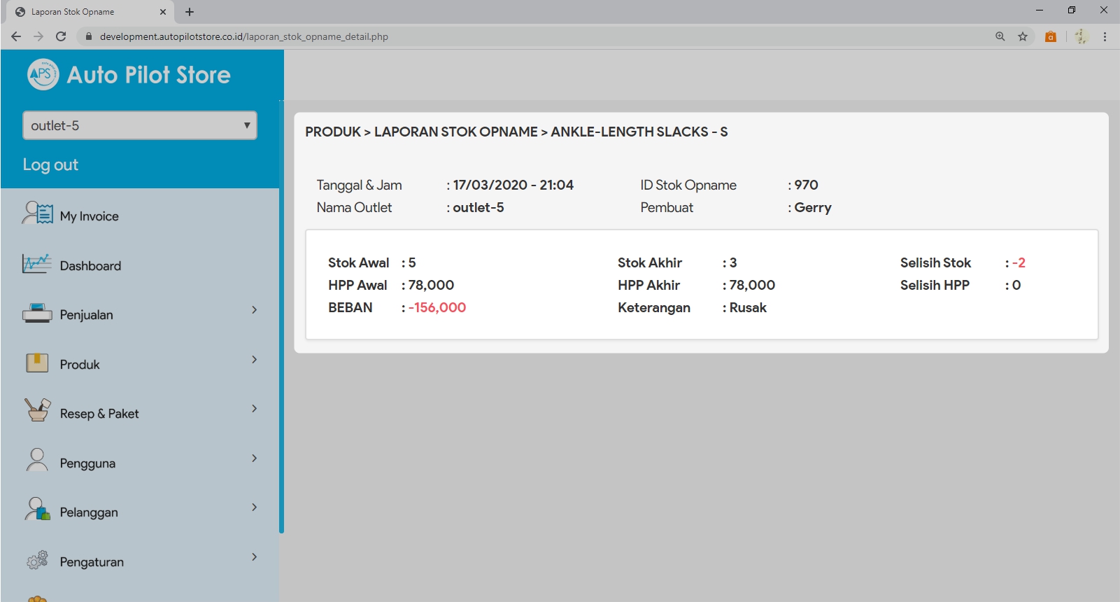 7. Detail Laporan Stok Opname berisi informasi :