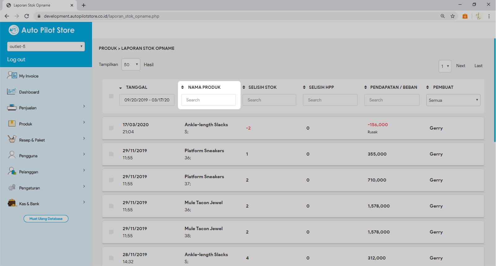 5. Masukkan Nama Produk bila ingin mencari perubahan pada produk tertentu saja