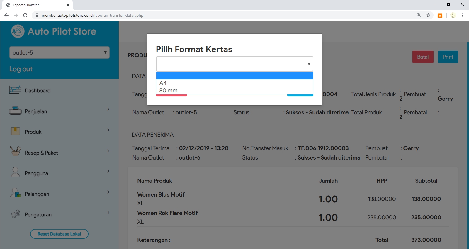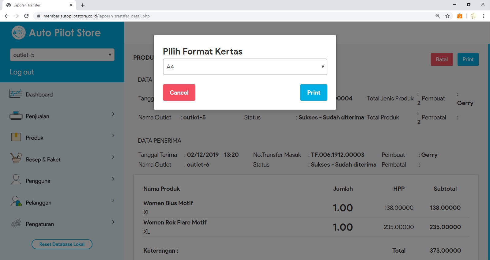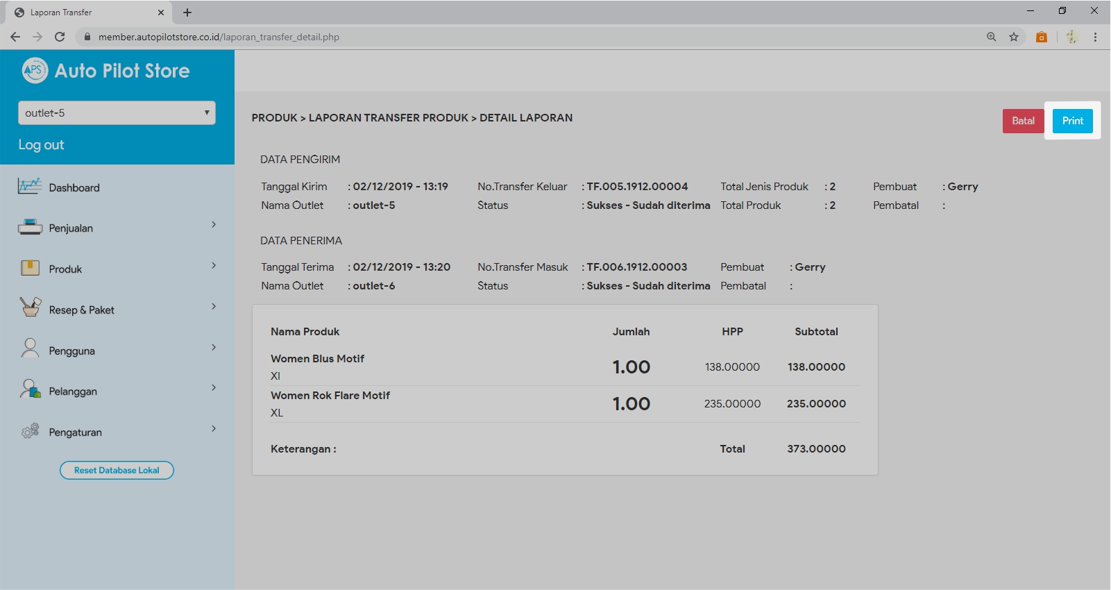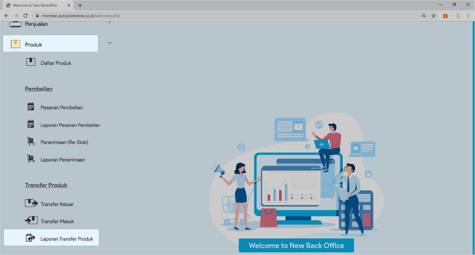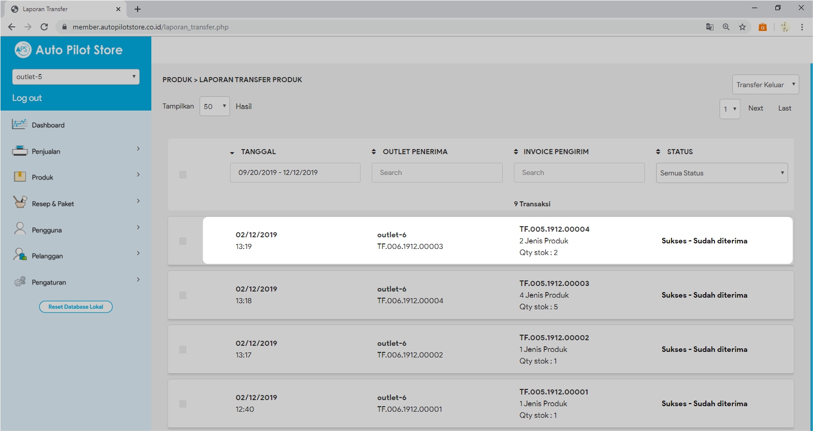 2. Pilih Sub Menu Laporan Transfer Produk