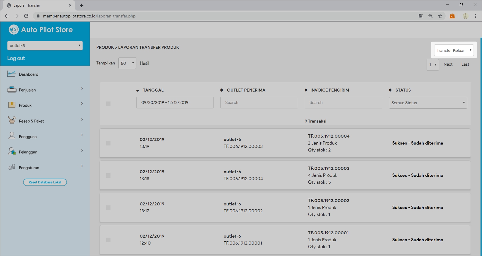 5. Pilih transfer keluar yang dimaksud