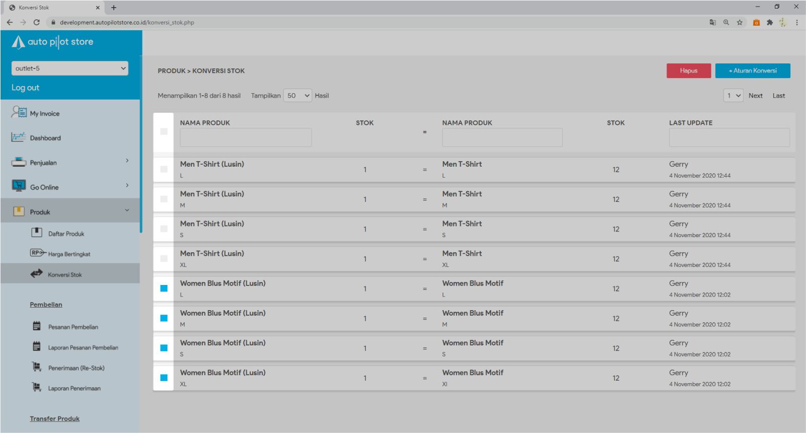 2. Pilih Sub Menu Konversi Stok