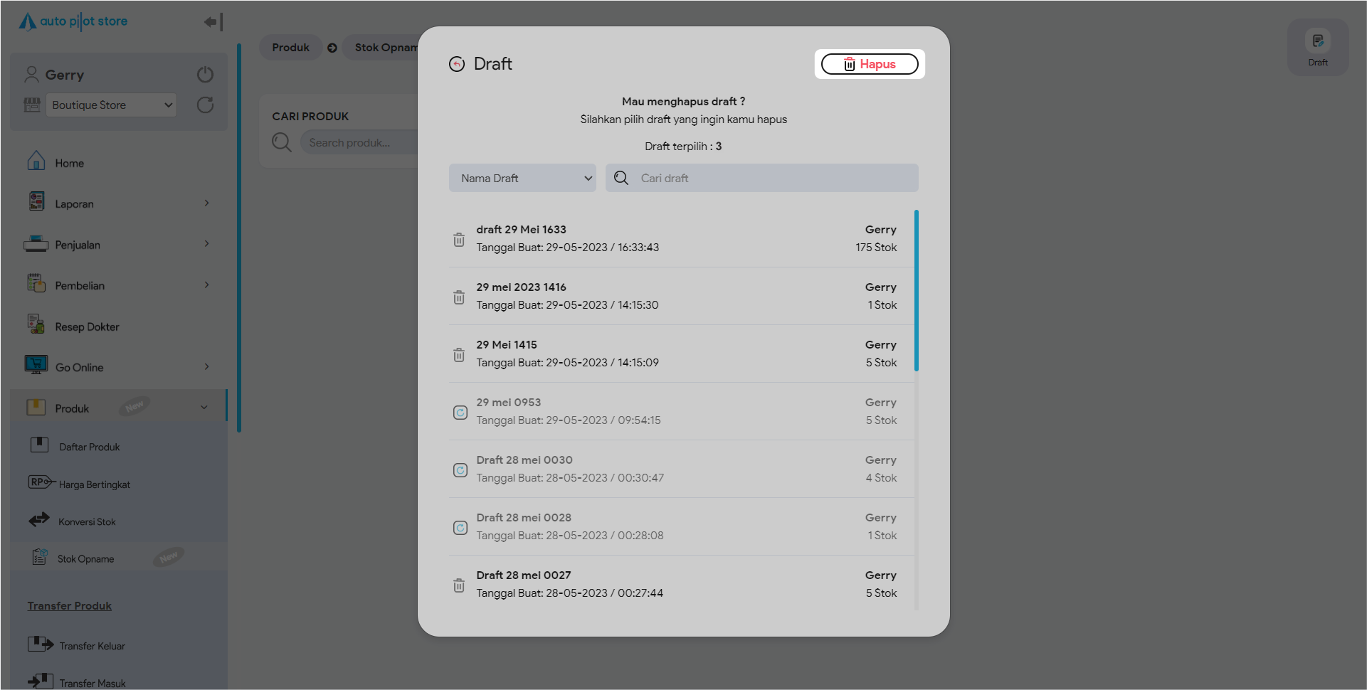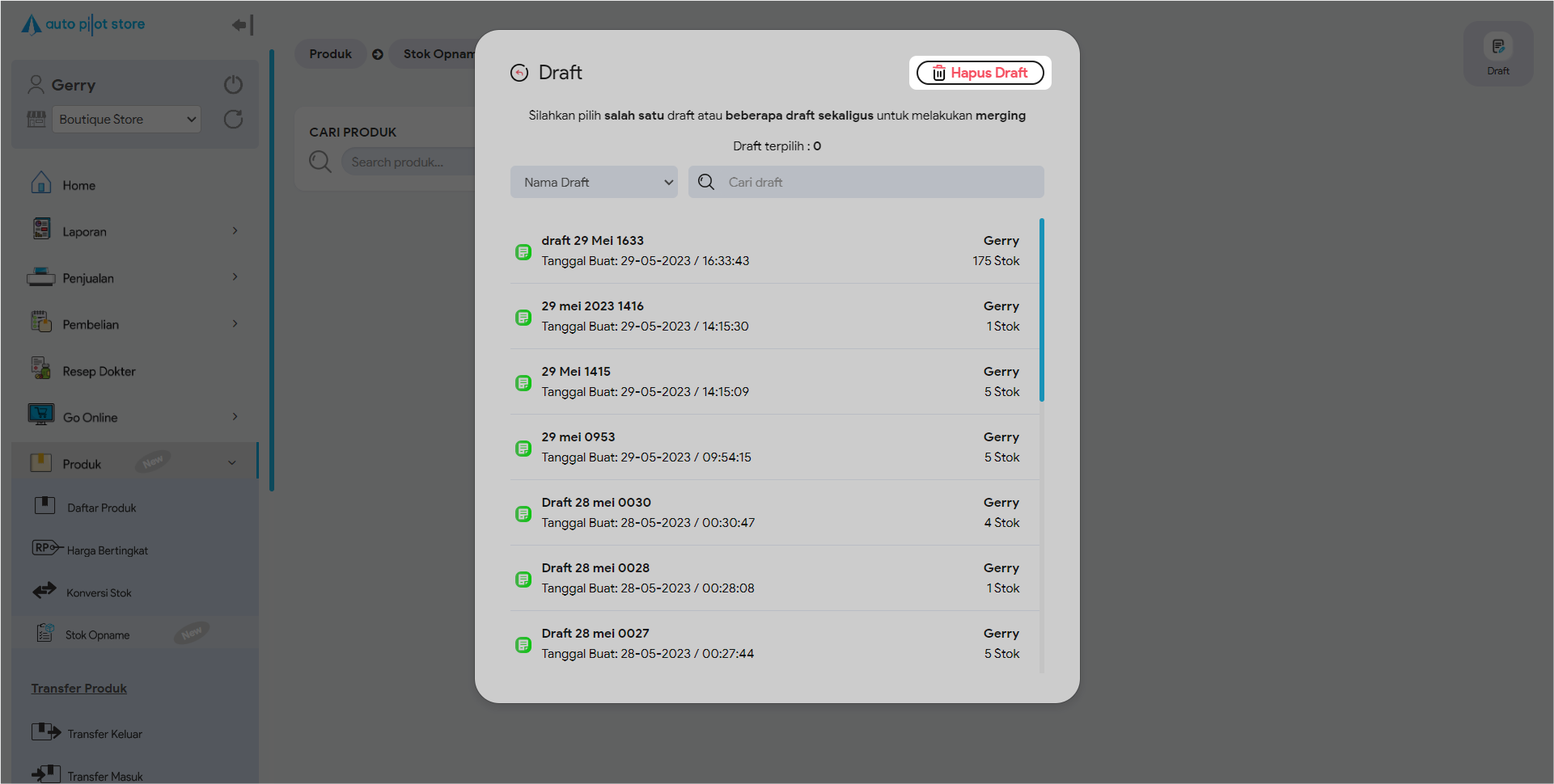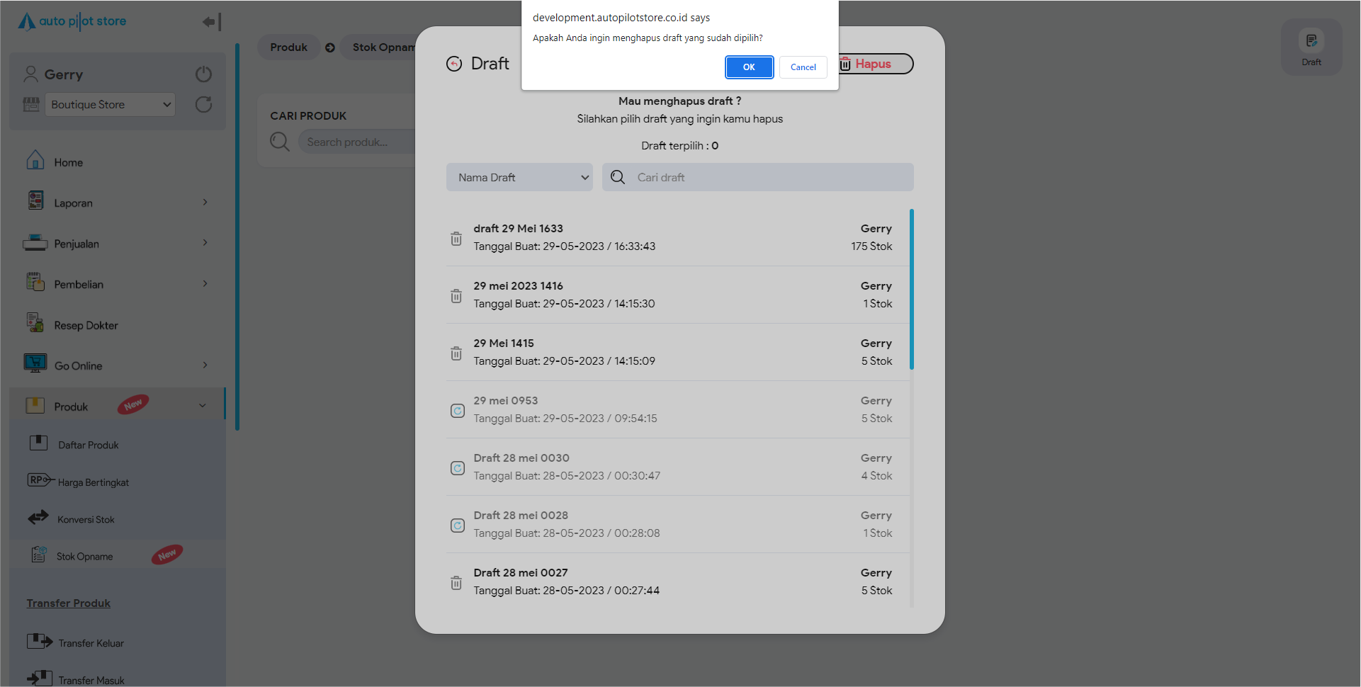 7. Lakukan konfirmasi penghapusan, maka draft berhasil terhapus.
