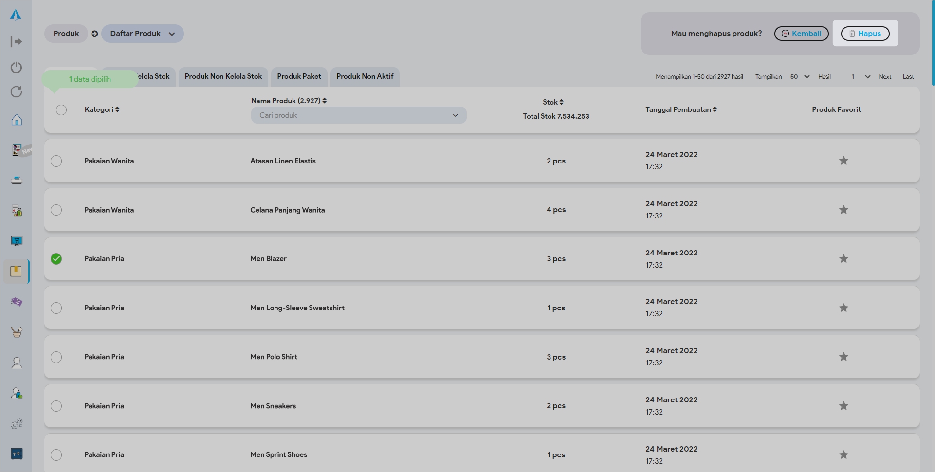 3. Klik checklist pada bagian depan produk yang akan dihapus.