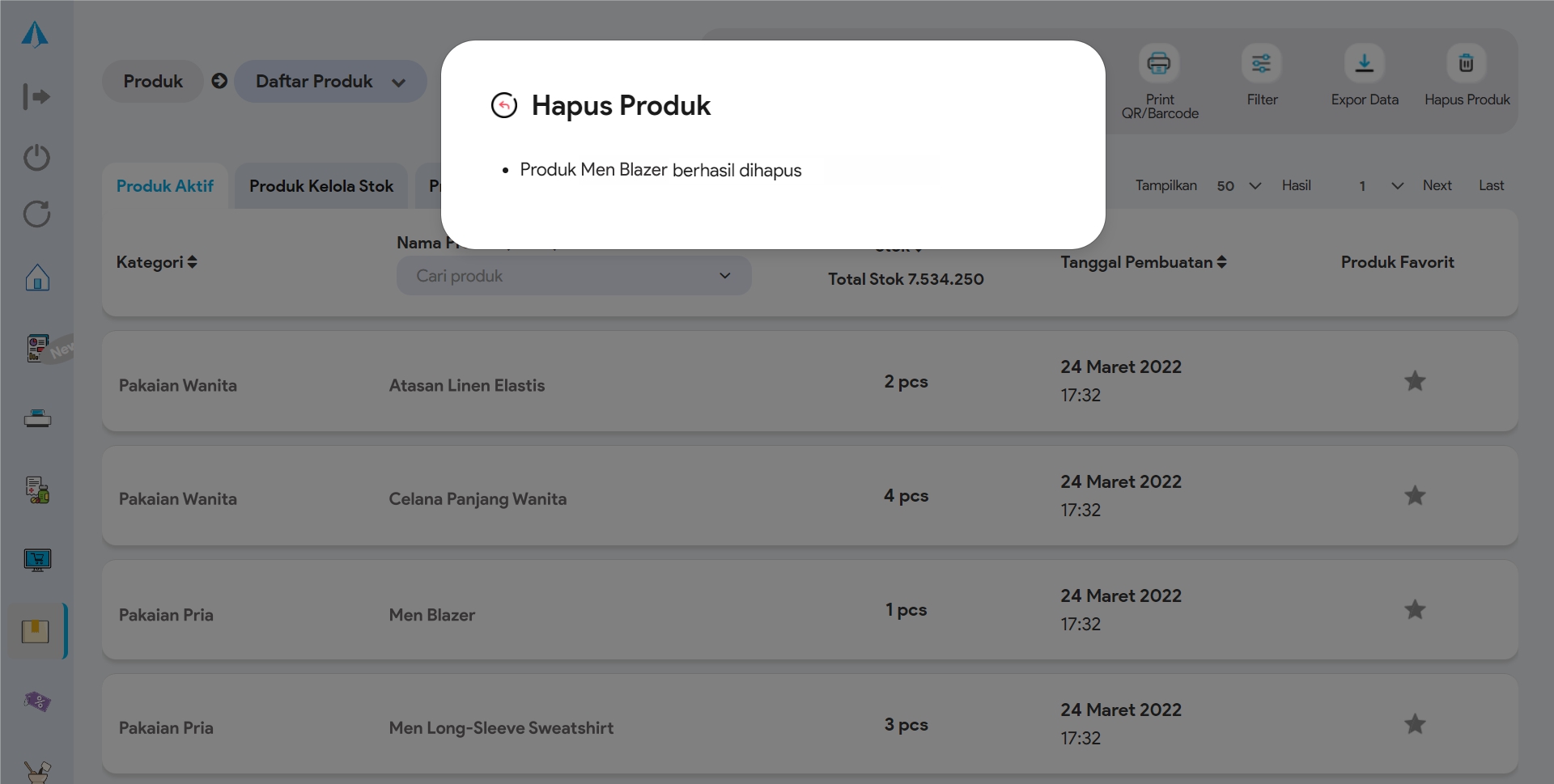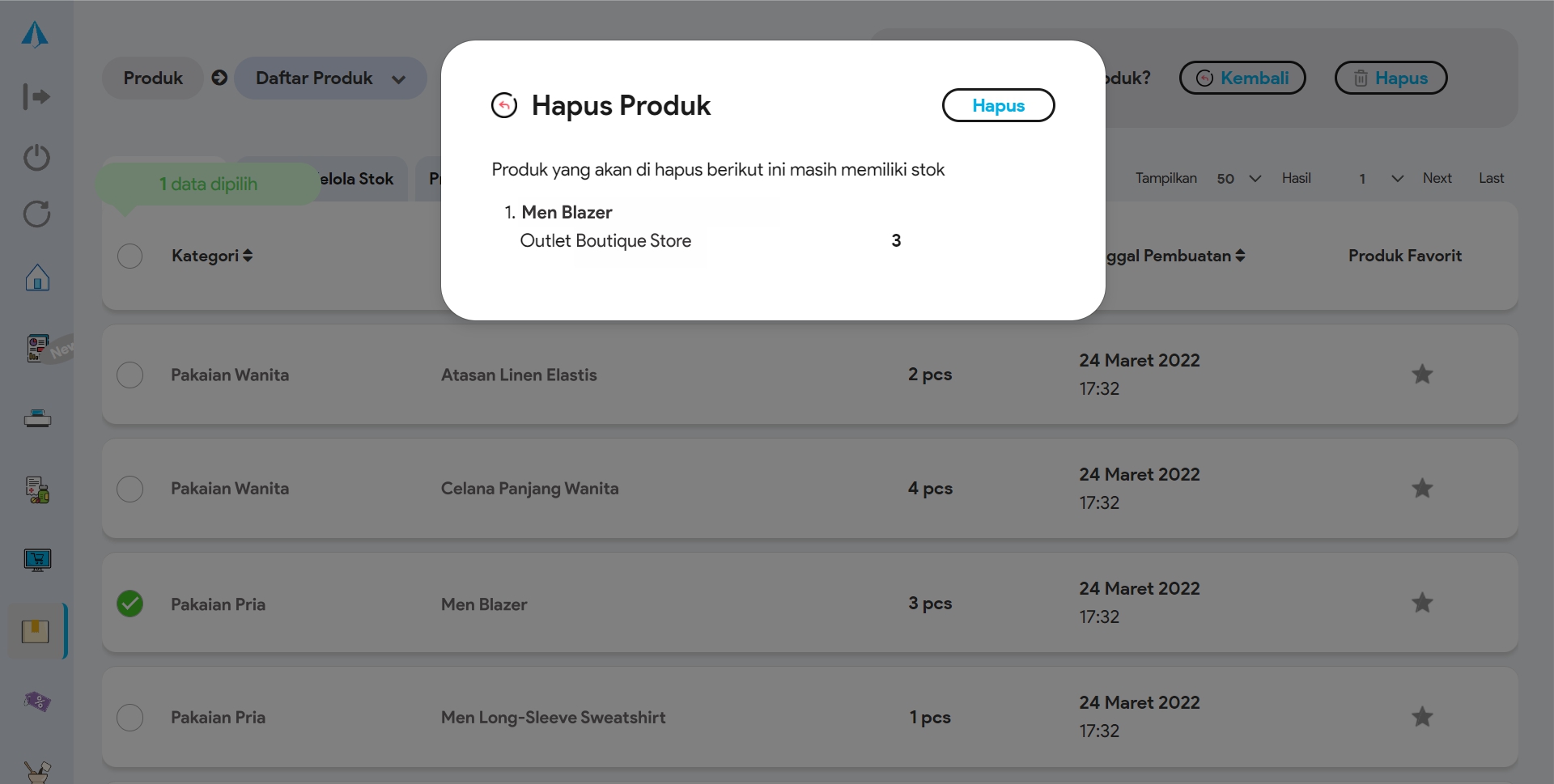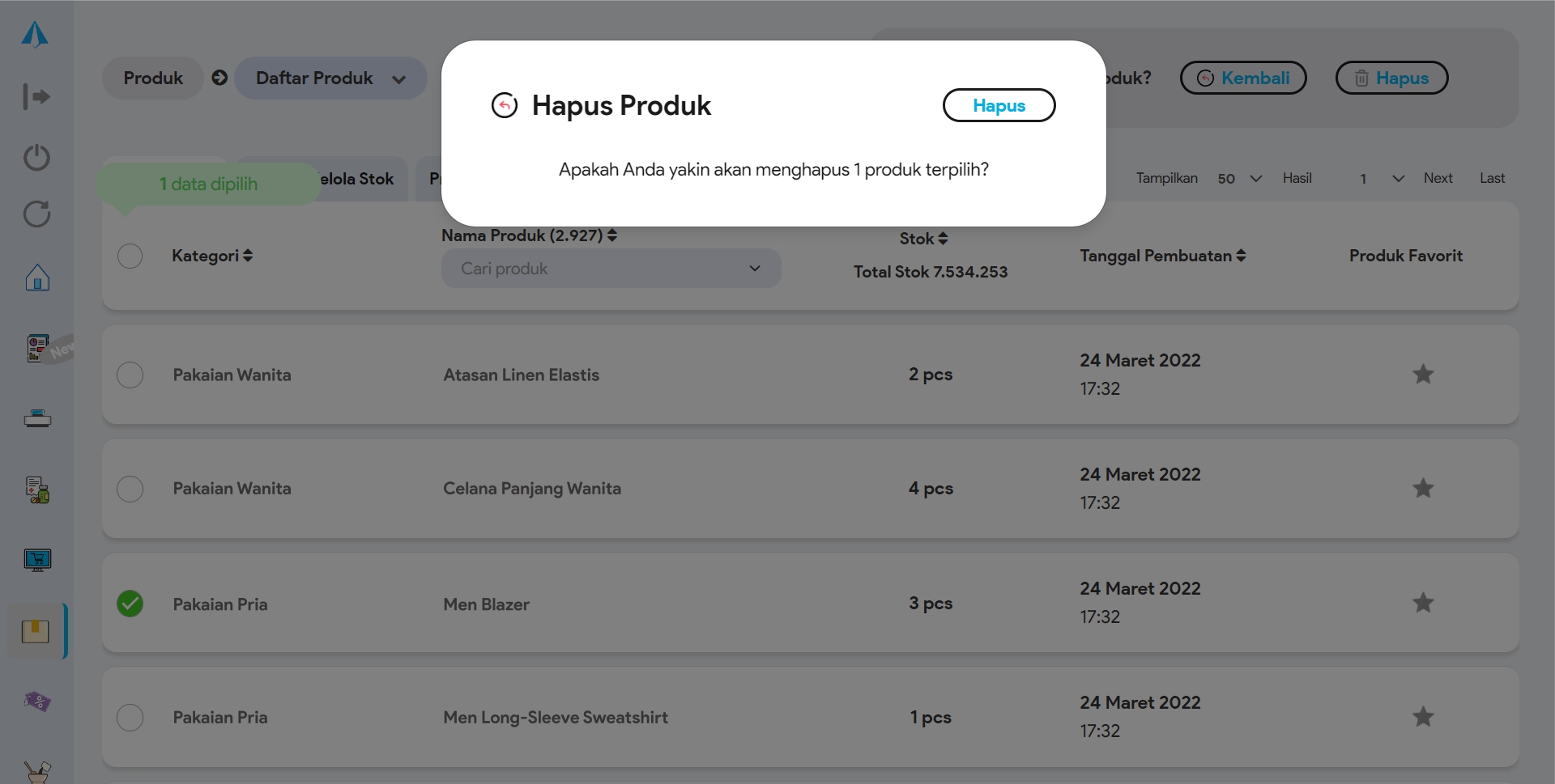 Jika Anda sudah yakin untuk menghapus produk ini, klik button Hapus